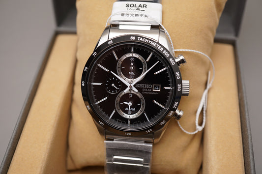 New Seiko Spirit SBPY119 V172 Black Dial Chronograph Solar Quartz Watch