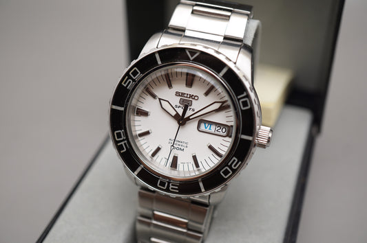 Rare Seiko 5 Sports SNZH51 7S36 Fifty Five Fathoms White Dial Automatic Watch