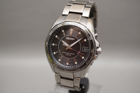Seiko 7B22-0AY0 Dark Grey Dial Radio Wave Solar Quartz Watch JDM