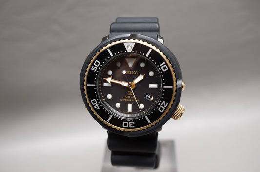 Seiko Prospex SBDN028 V147 Lowercase Limited Black Gold Tuna Solar Quartz Watch