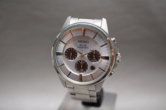 Seiko Spirit SBPY113 V172 JDM White Panda Dial Chronograph Solar Quartz Watch