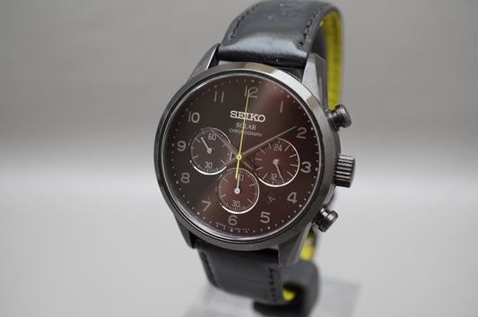 Seiko V175-0BJ0 Blacked Out Lime Green Seconds Chronograph Solar Quartz Watch