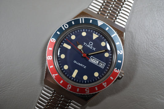 Timex Q TW2T80700 Vintage Style Diver Inspired Pepsi Reissue Quartz Watch