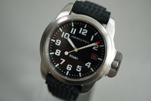 Hamilton Field H614110 Field Black Dial Crown Guard Quartz Watch For Repair