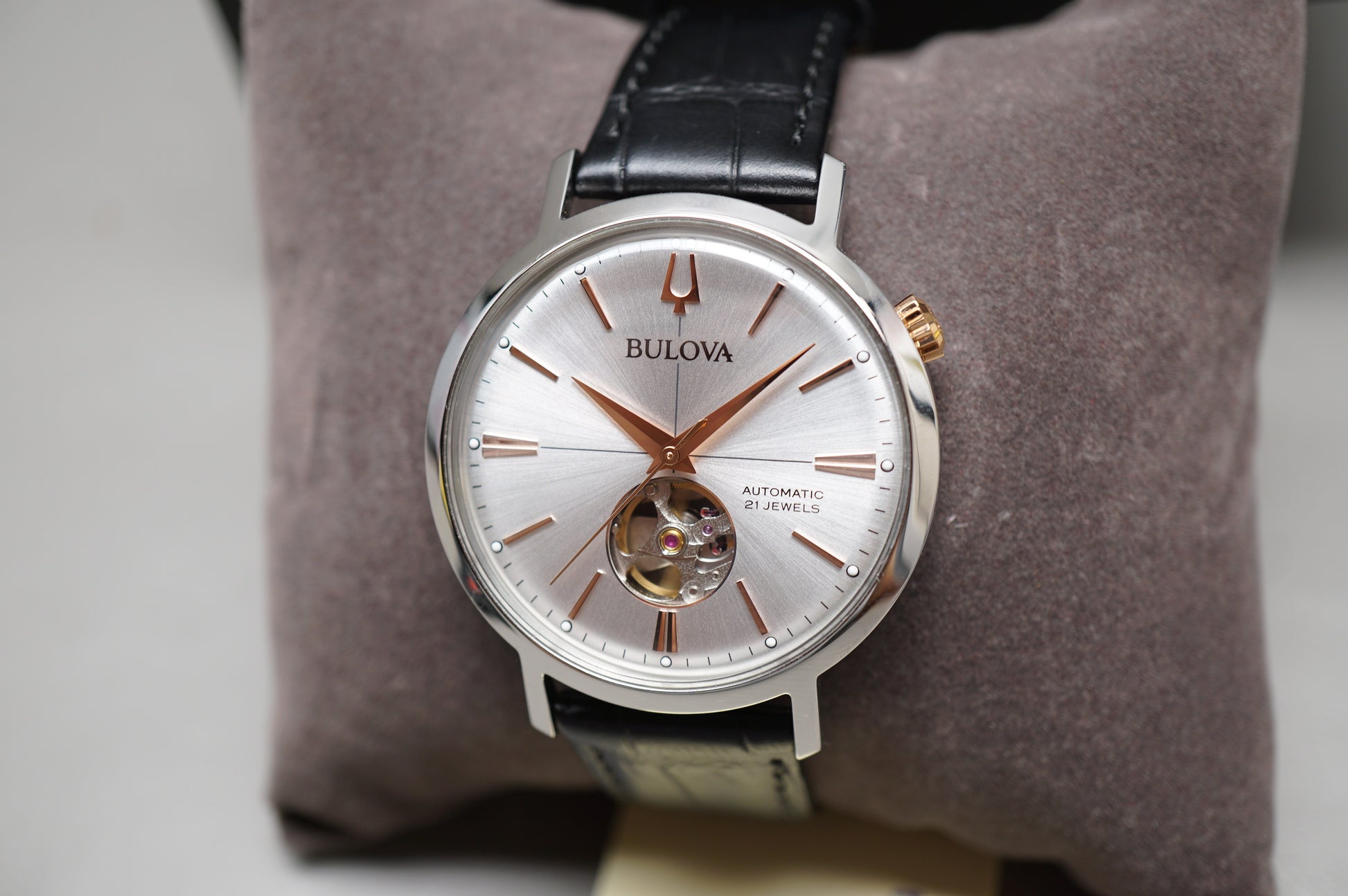 Bulova Classic Aerojet 98A289 Silver Dial Open Heart Automatic Watch