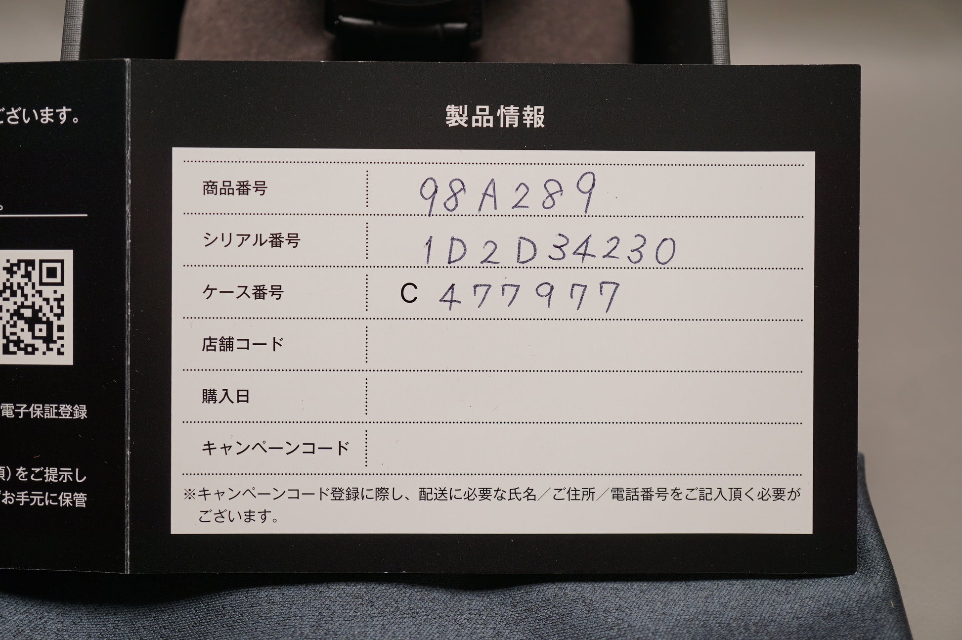 Warranty card: Stamped