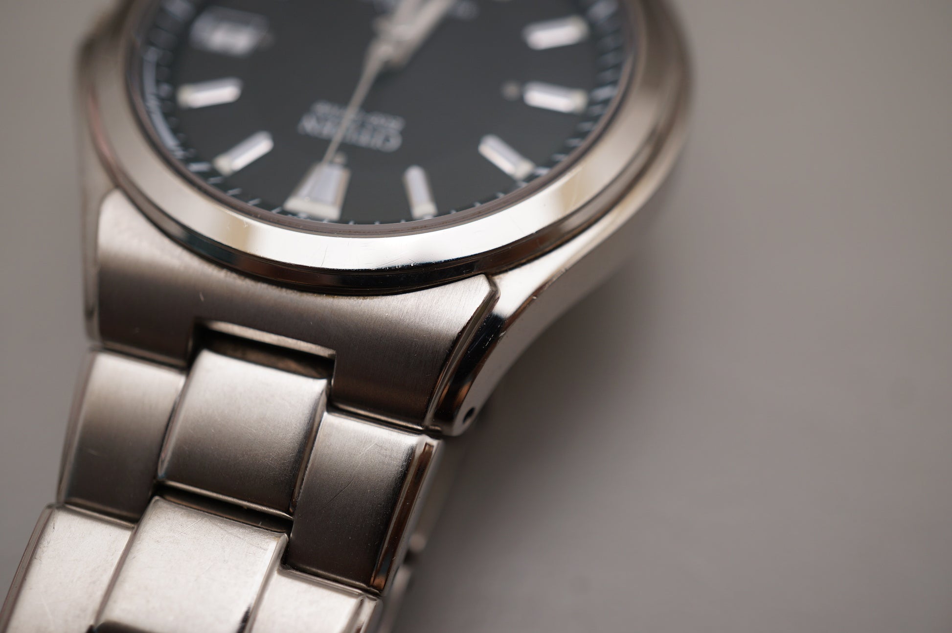 For sale is a Citizen Atessa H110-T011331 Black Dial Titanium JDM Solar Quartz Watch