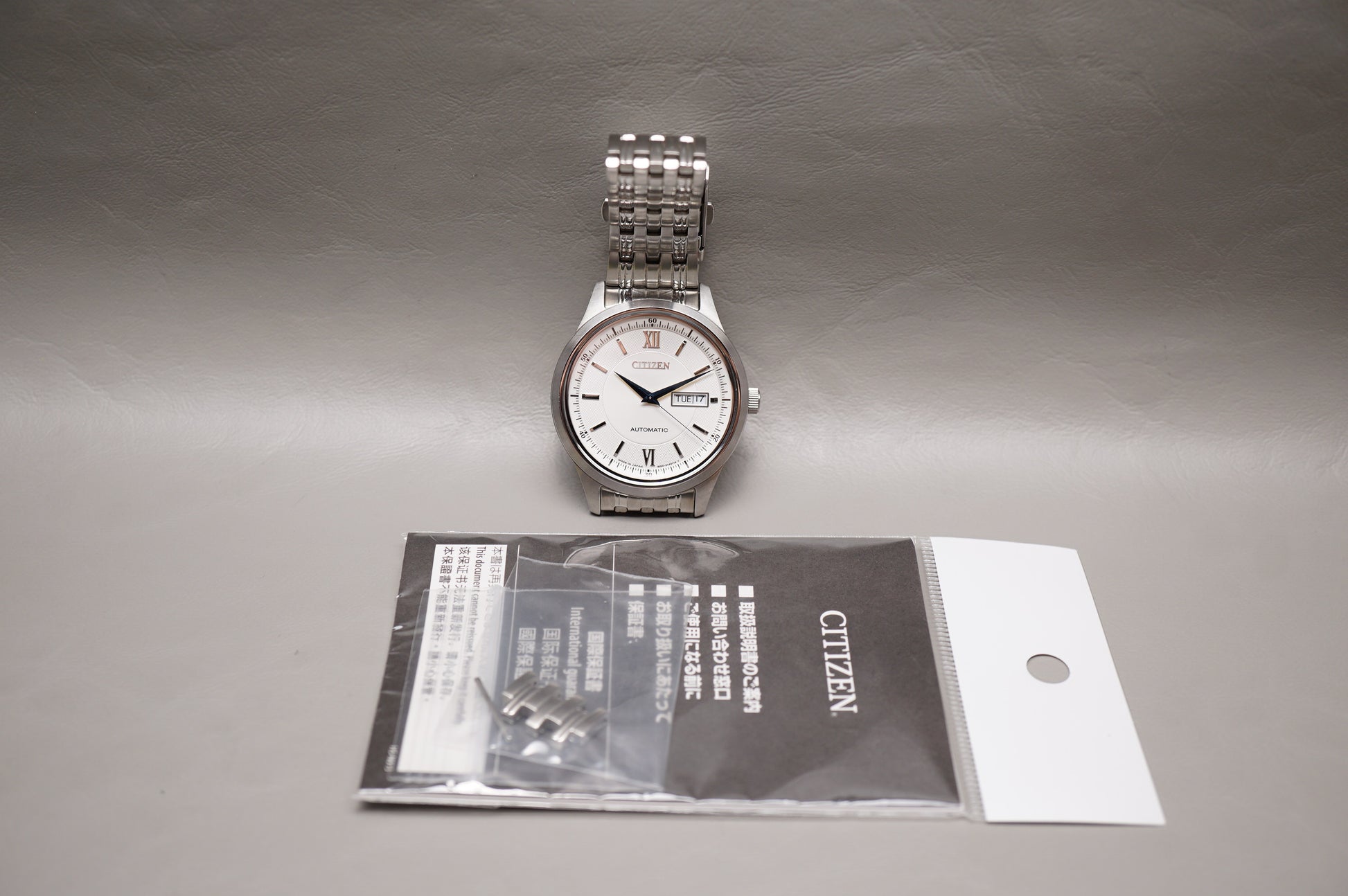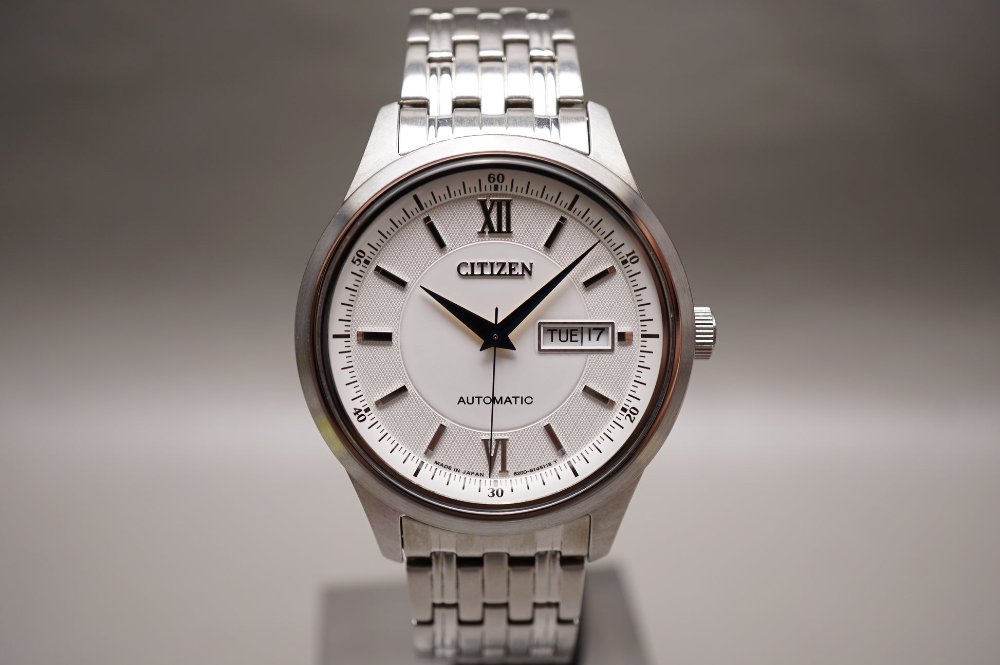 For sale is a Citizen Collection NY4050-54A Silver Textured Dial Automatic Watch