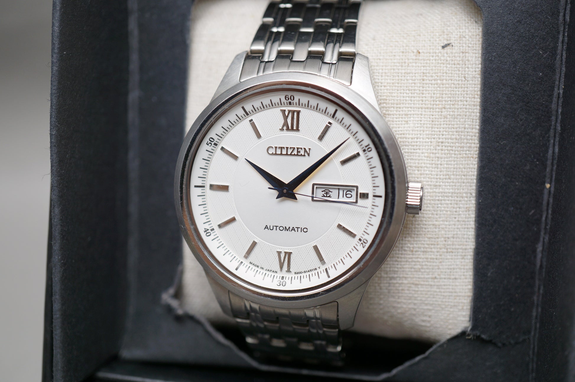 For sale is a Citizen Collection NY4050-54A Silver Textured Dial Automatic Watch