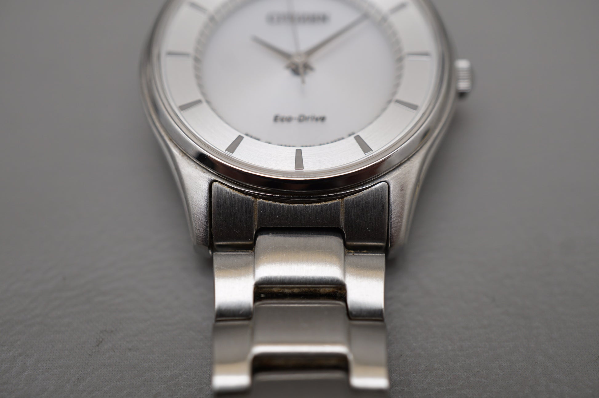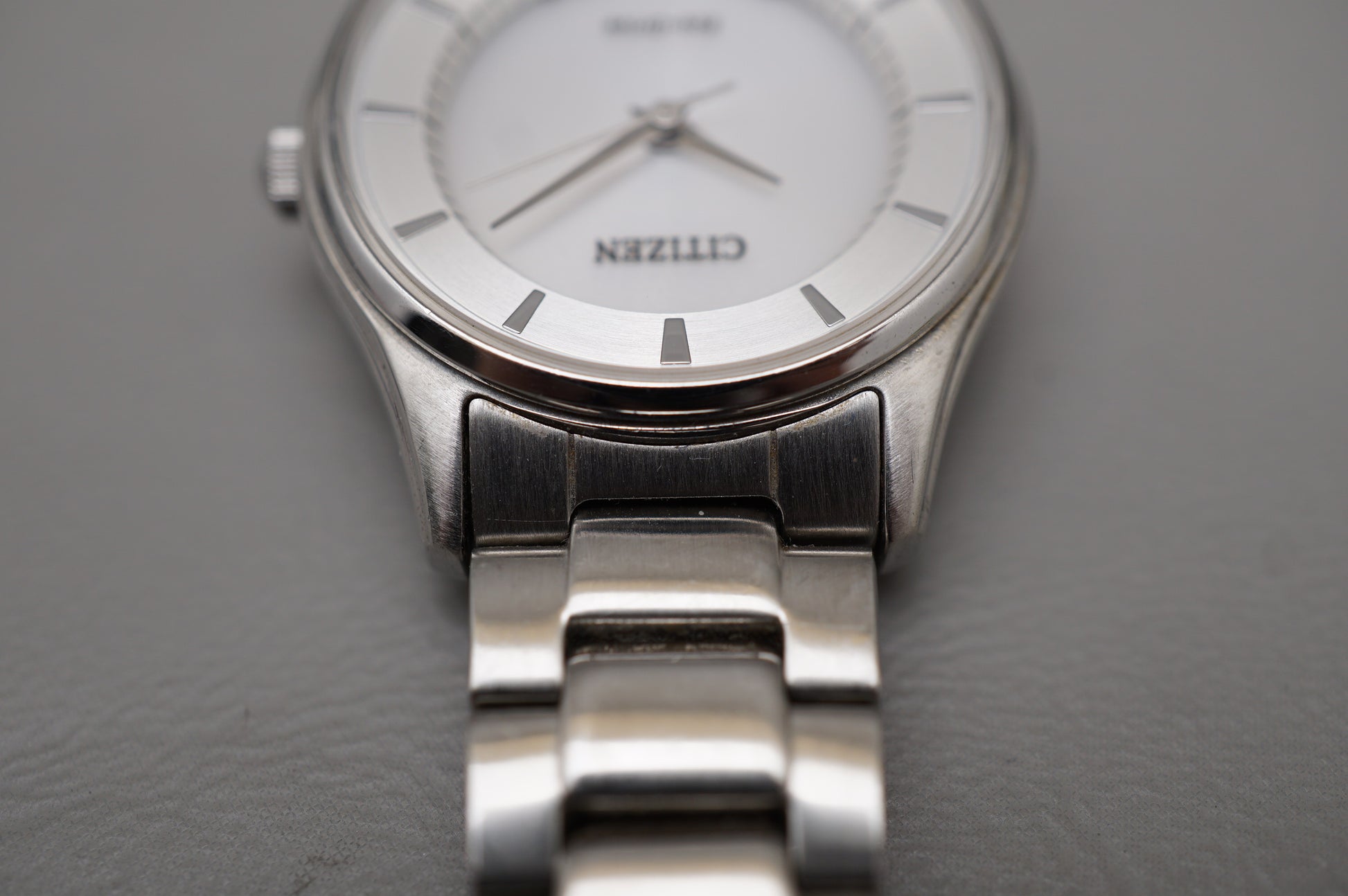 For sale is a Citizen Eco-Drive E031-S103746 Silver Dial Ladies Solar Quartz Made In Japan Watch