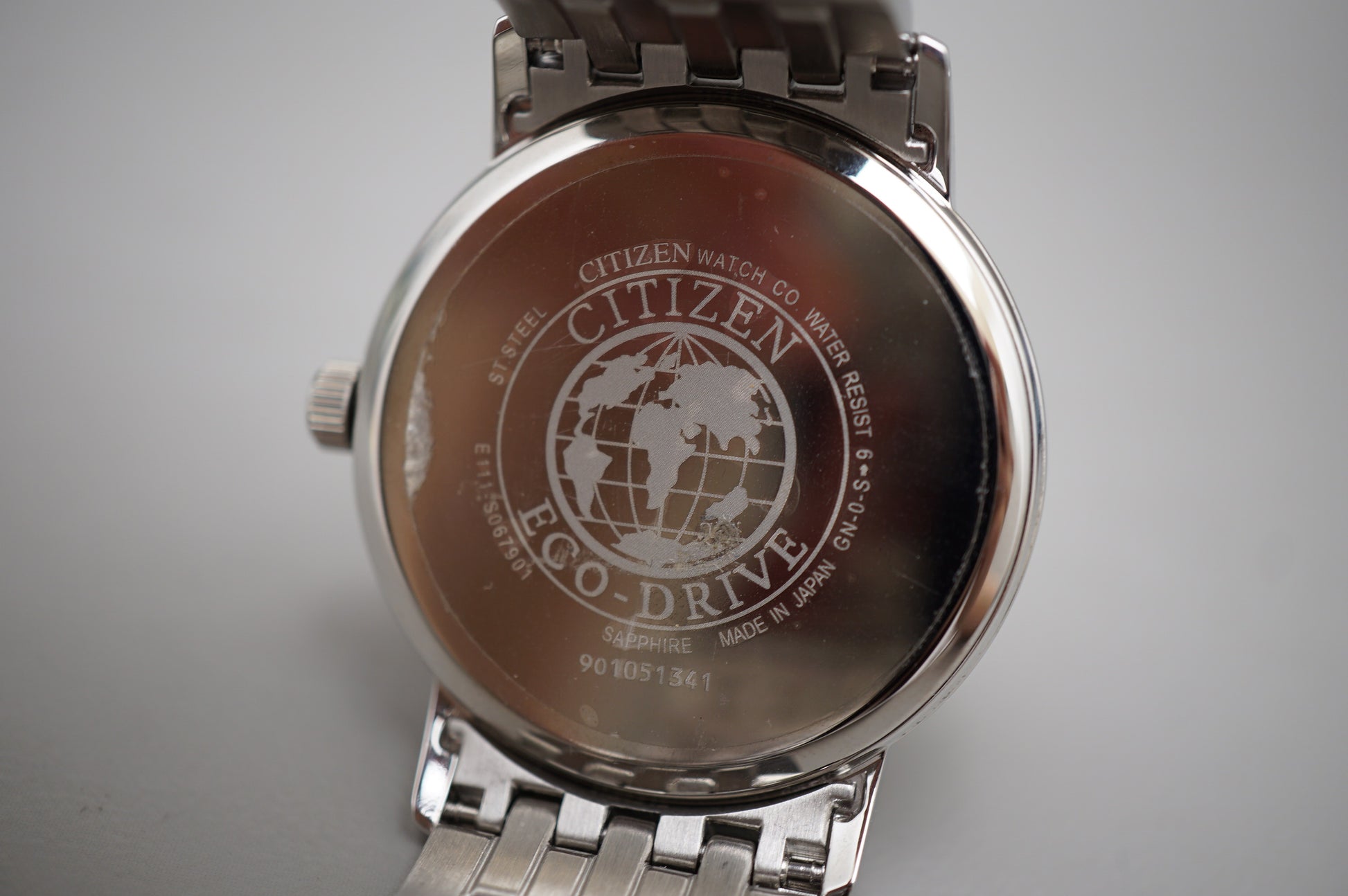 For sale is a Citizen Eco-Drive E111-S067901 Black Dial Sapphire JDM Solar Quartz Watch