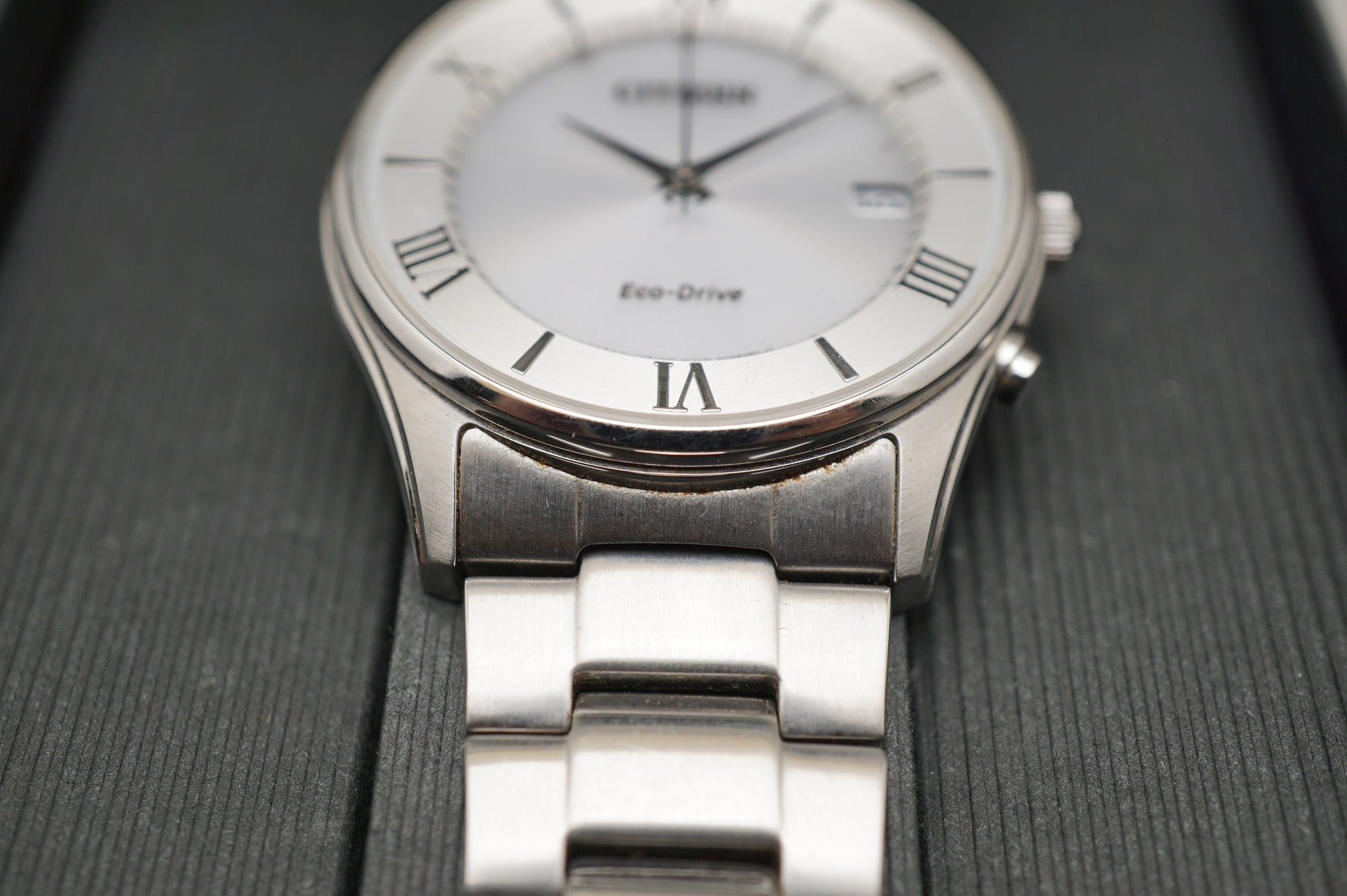 For sale is a Citizen Eco-Drive H415-S112907 Silver Dial JDM Radio Wave Solar Quartz Watch