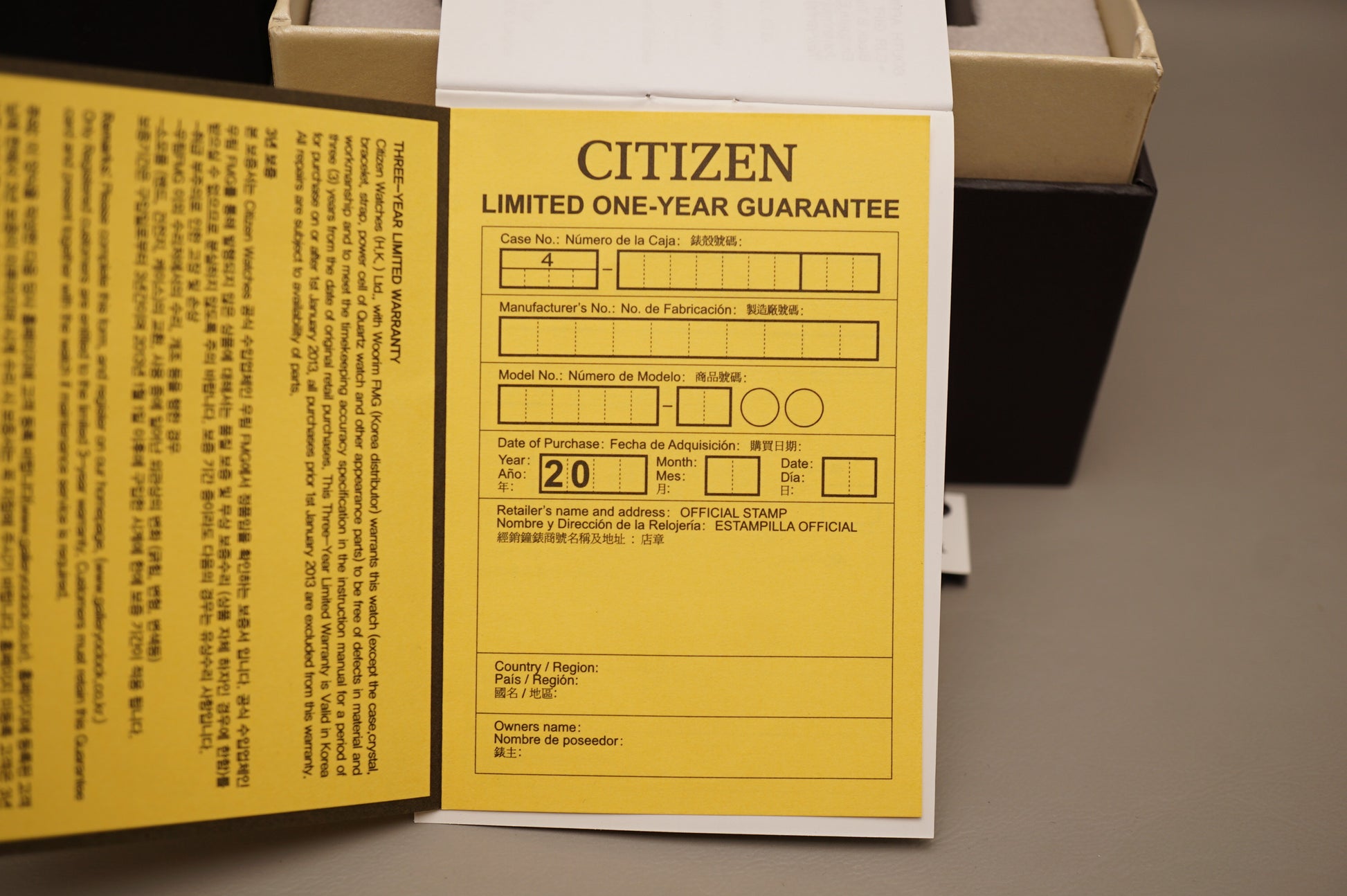 Warranty card: Blank