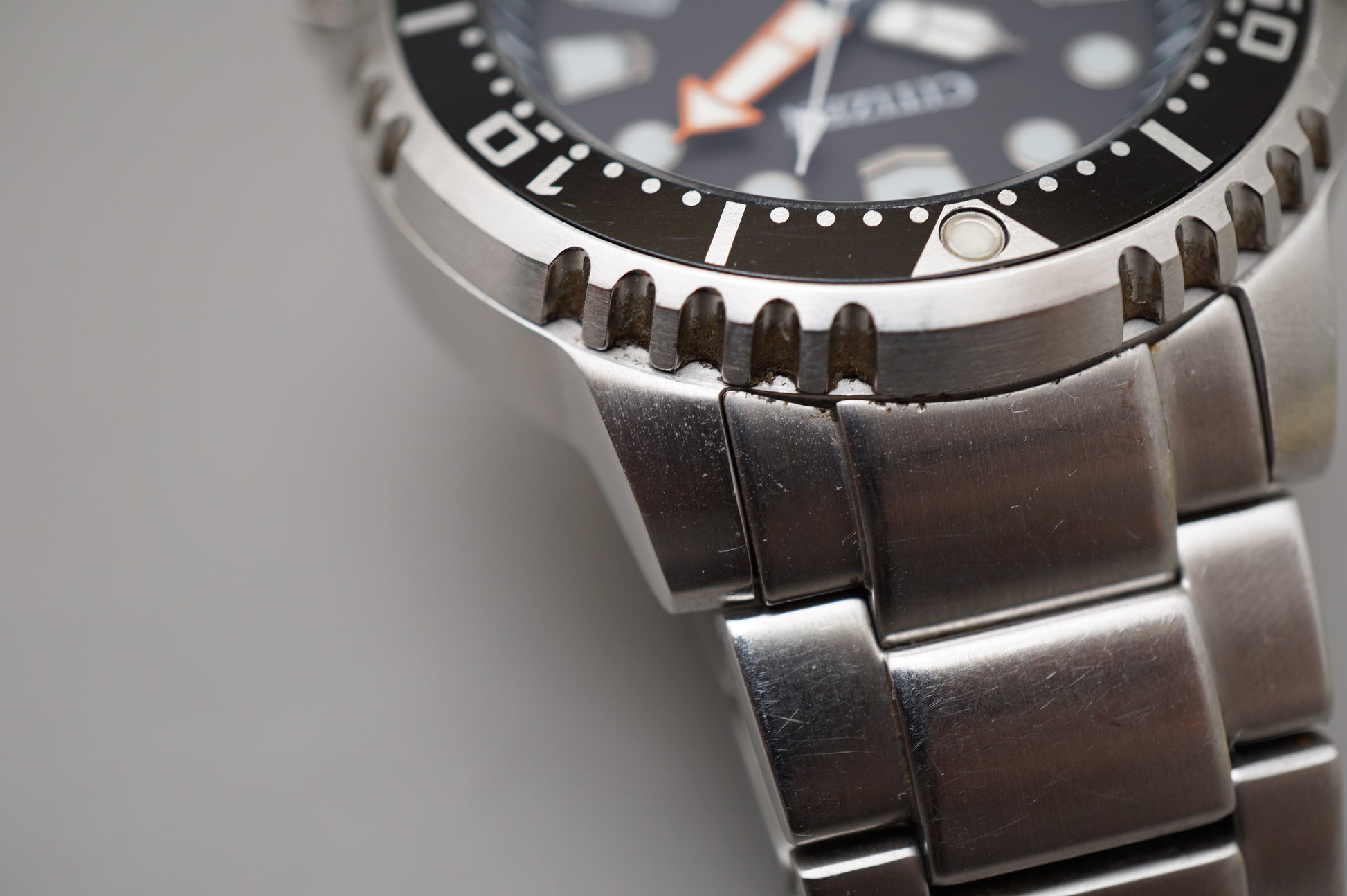 Wear on crystal. Rare find with the OEM 59-S06105 bracelet.