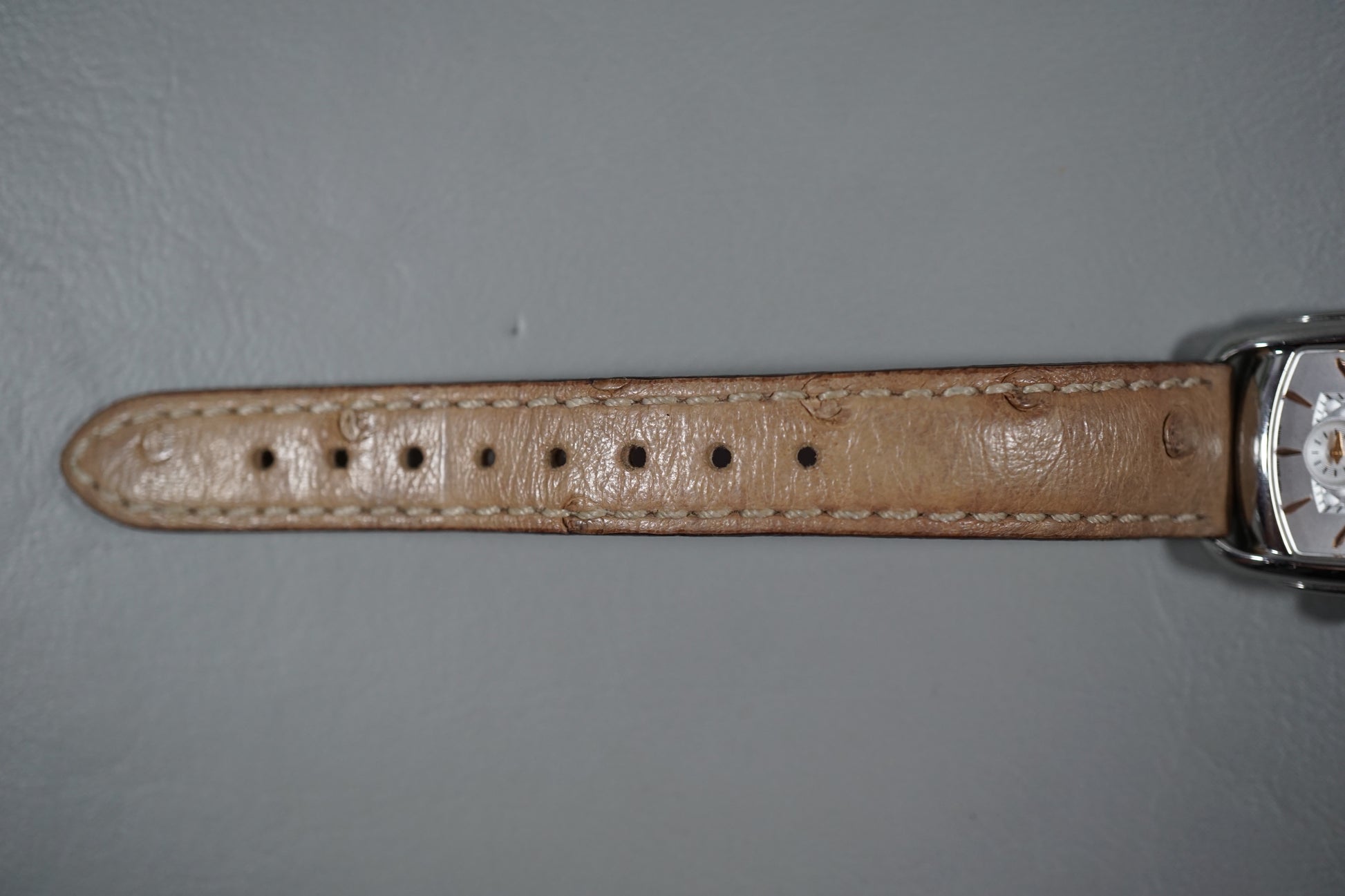 This watch is in pre-owned condition and comes as pictured on the original leather band. This piece comes watch only, no accessories are included.