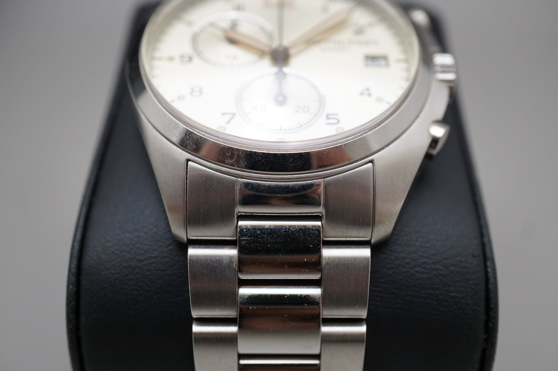 For sale is a Hamilton Aviation Pilot Pioneer H76512155 Cream Dial Quartz Chronograph Watch
