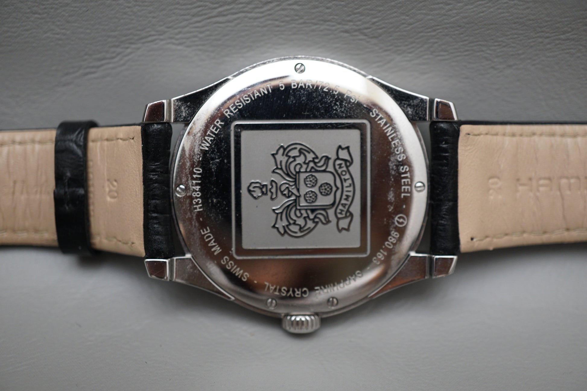 For sale is a Hamilton Jazzmaster H38411783 Grey Dial Thinline Small Seconds Quartz Watch