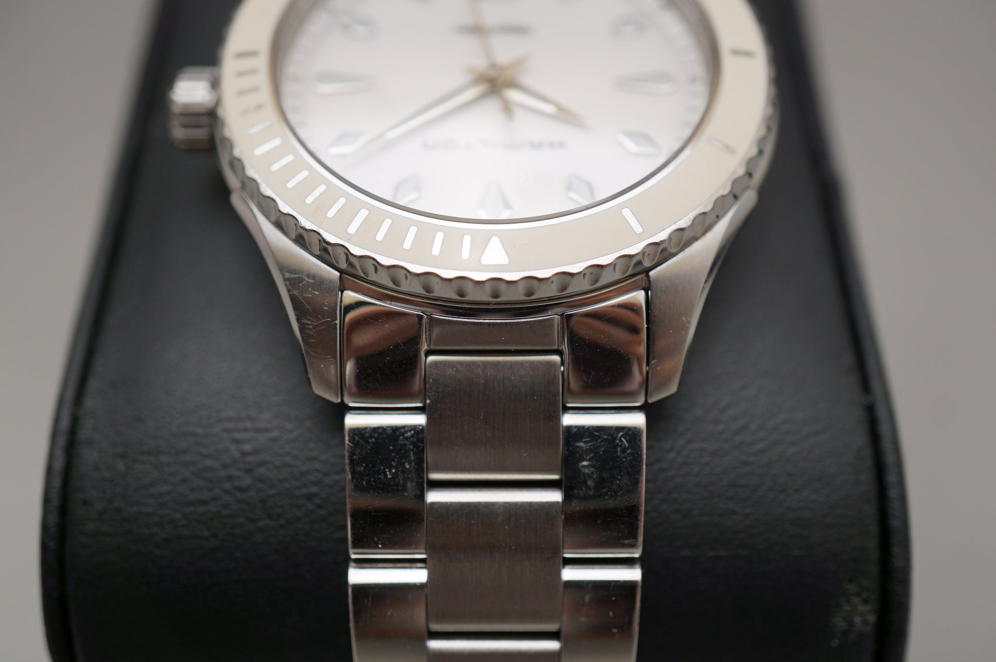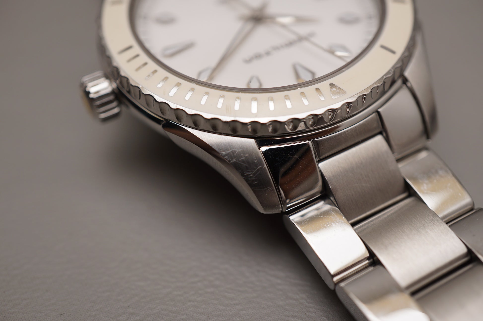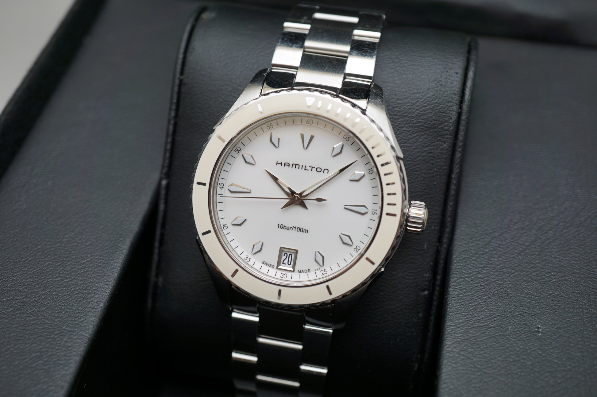 For sale is a Hamilton Jazzmaster Seaview H37411111 White Dial 37mm Swiss Quartz Watch