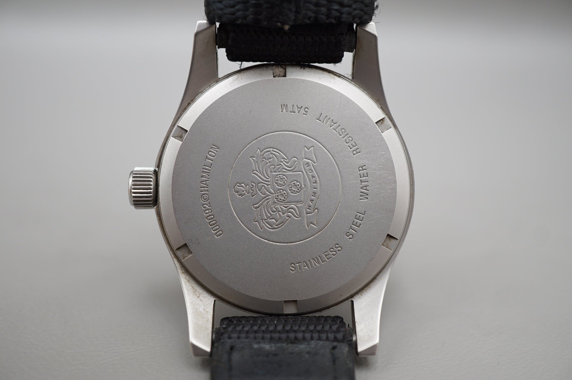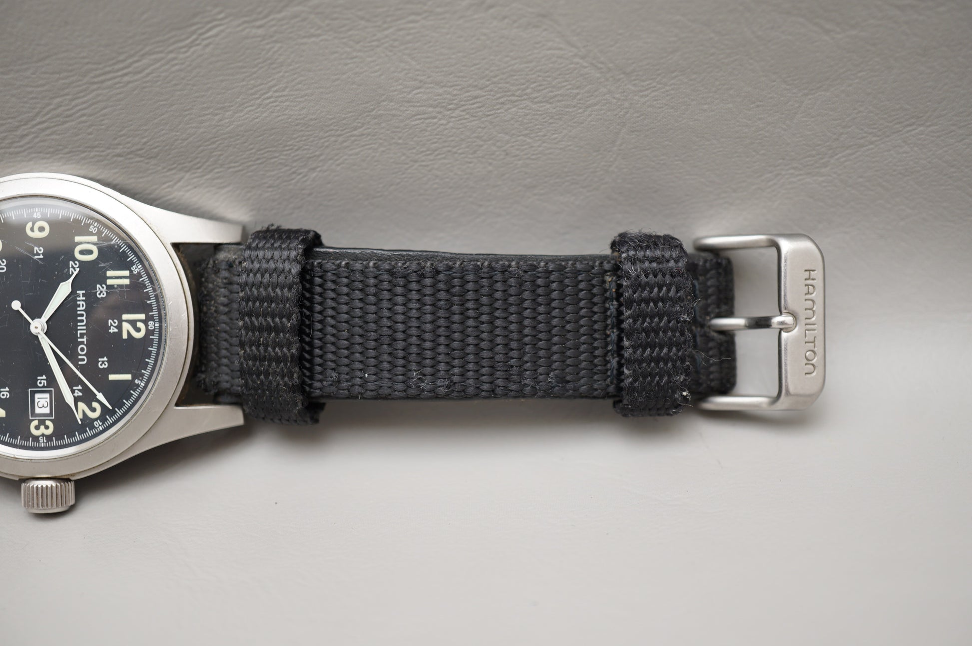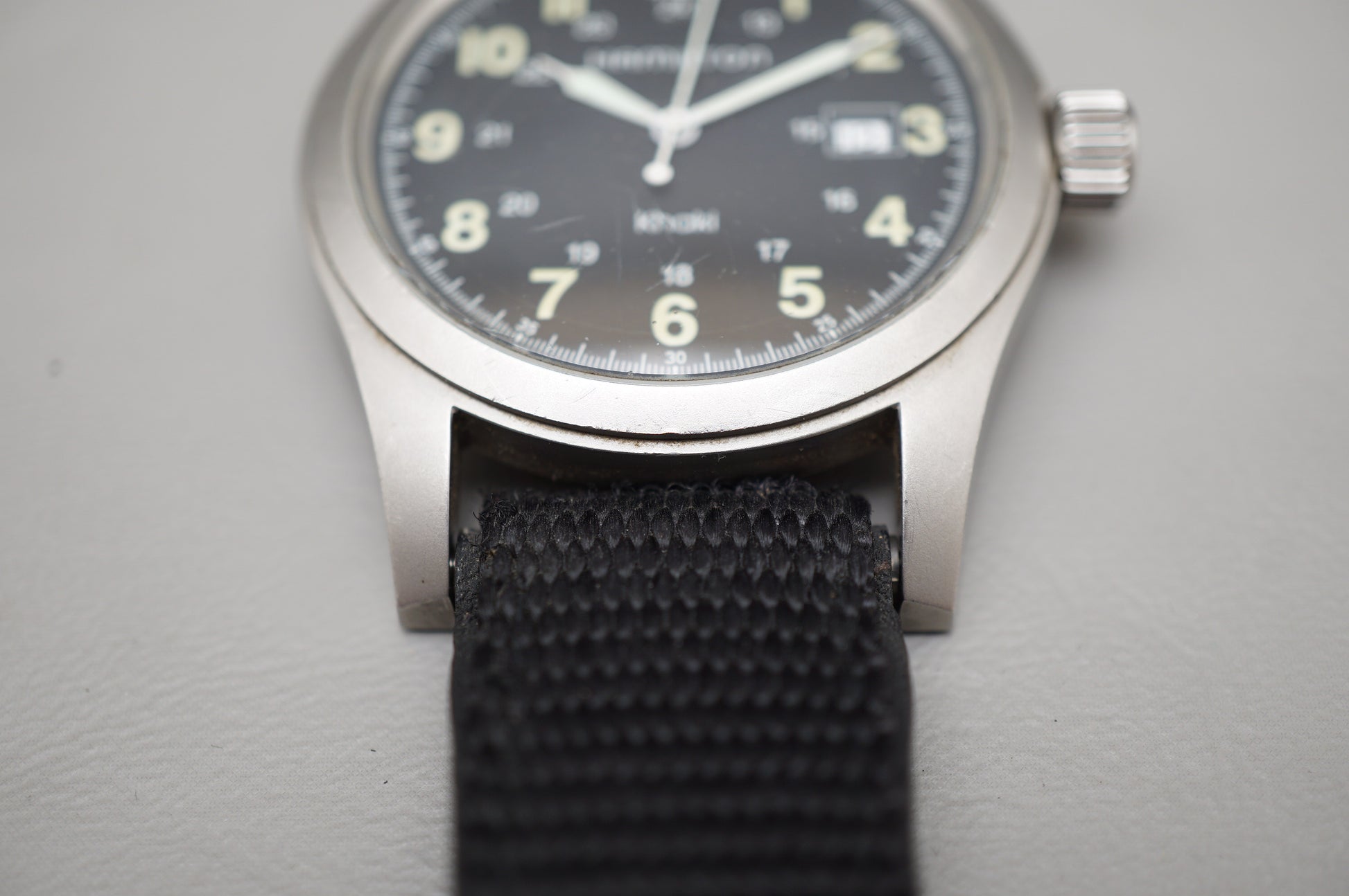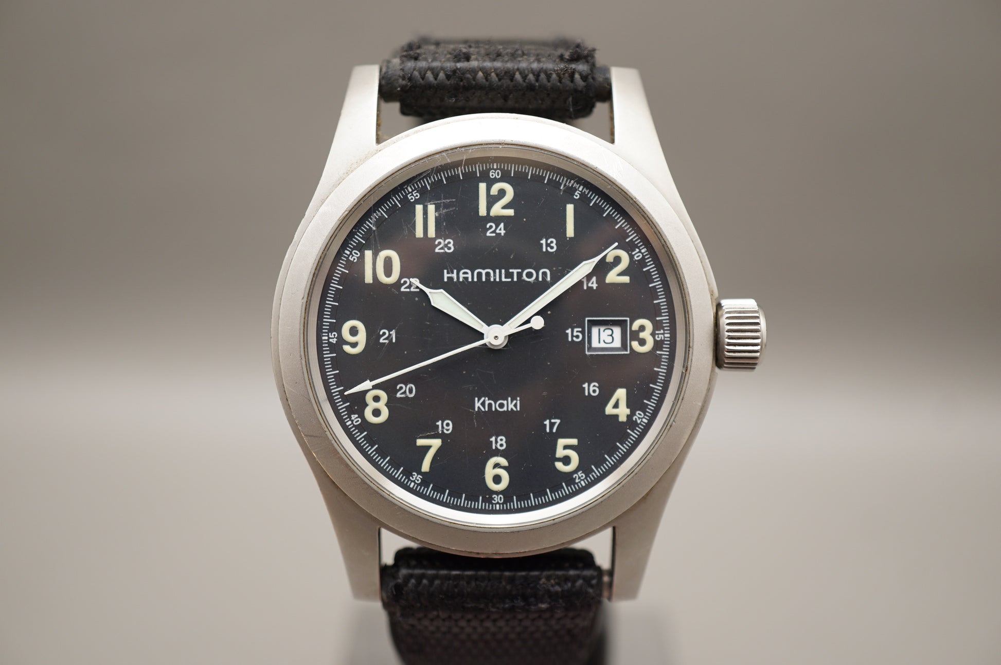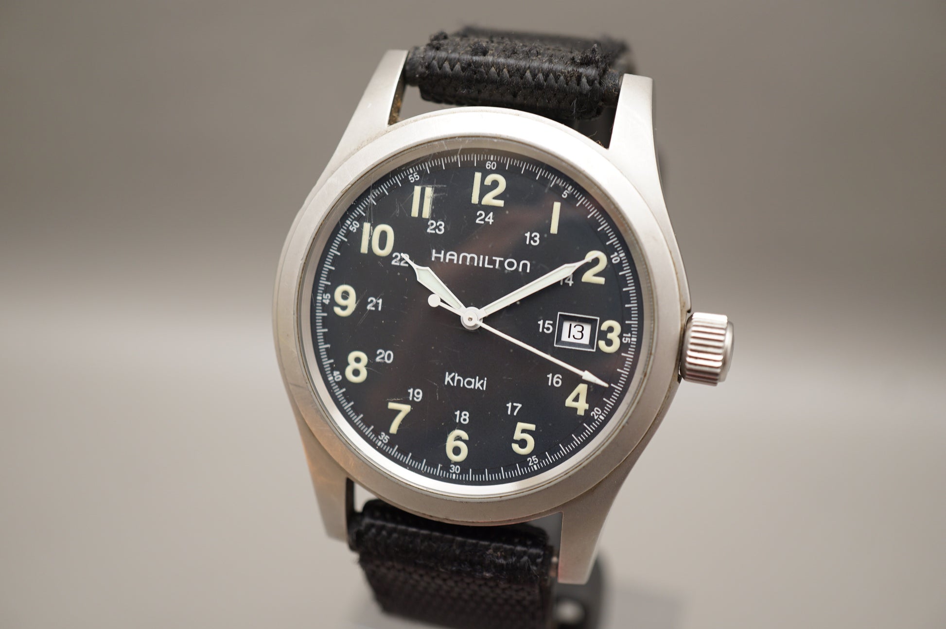 For sale is a Hamilton Khaki 000092 Field Black Dial Swiss ETA Quartz Field Watch