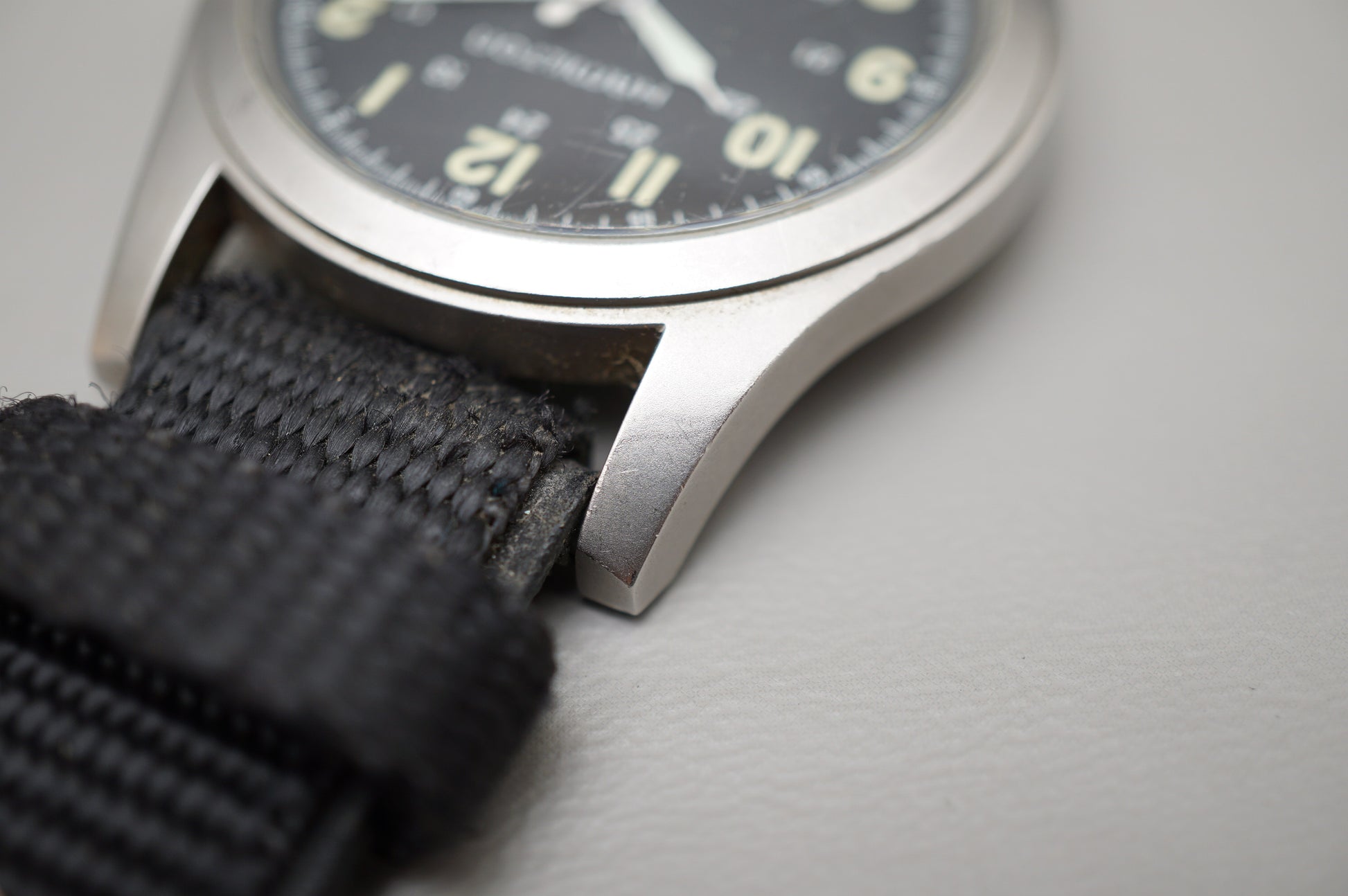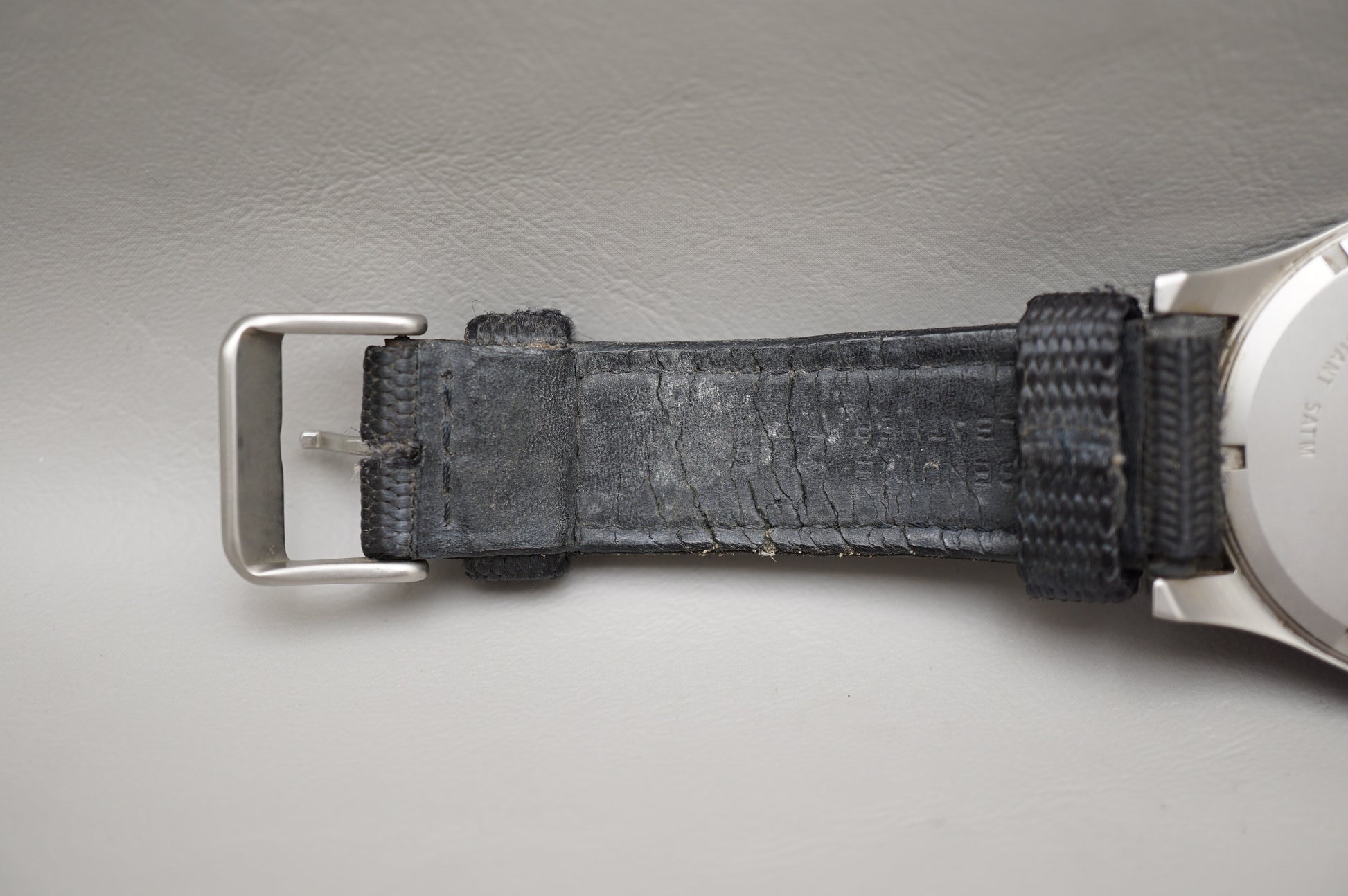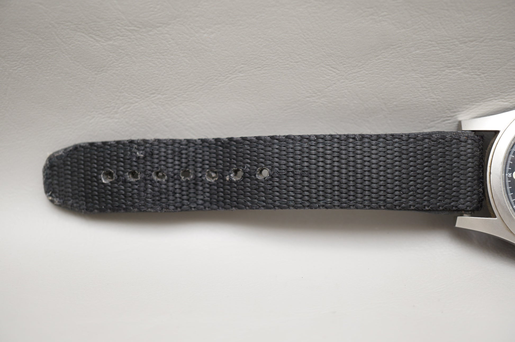 Strap: Original nylon with cracking/deterioration on back from age and wear.