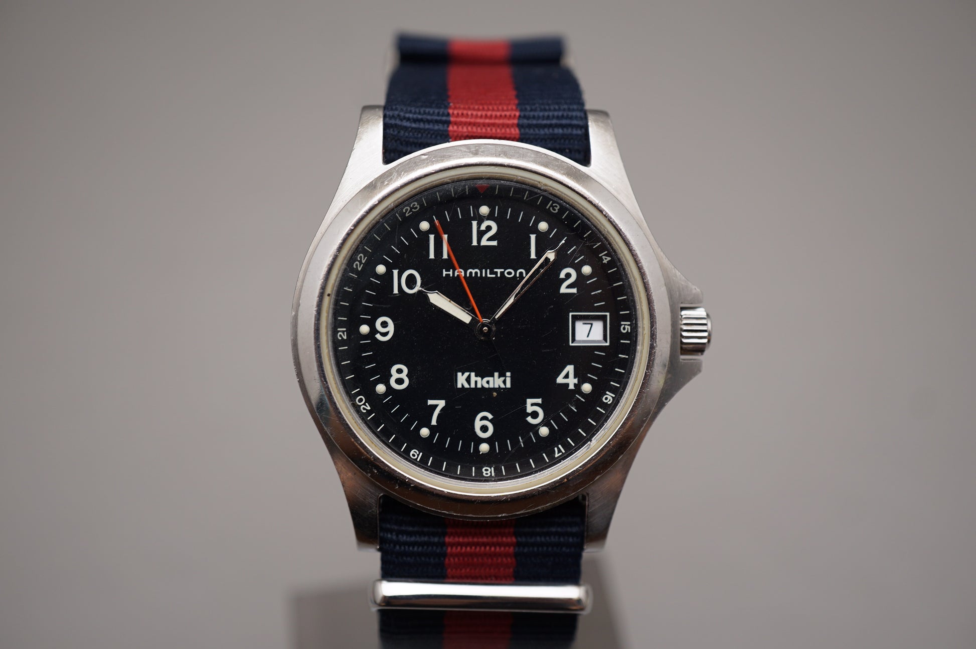 For sale is a Hamilton Khaki Field 8775 Black Dial United States Navy Quartz Watch