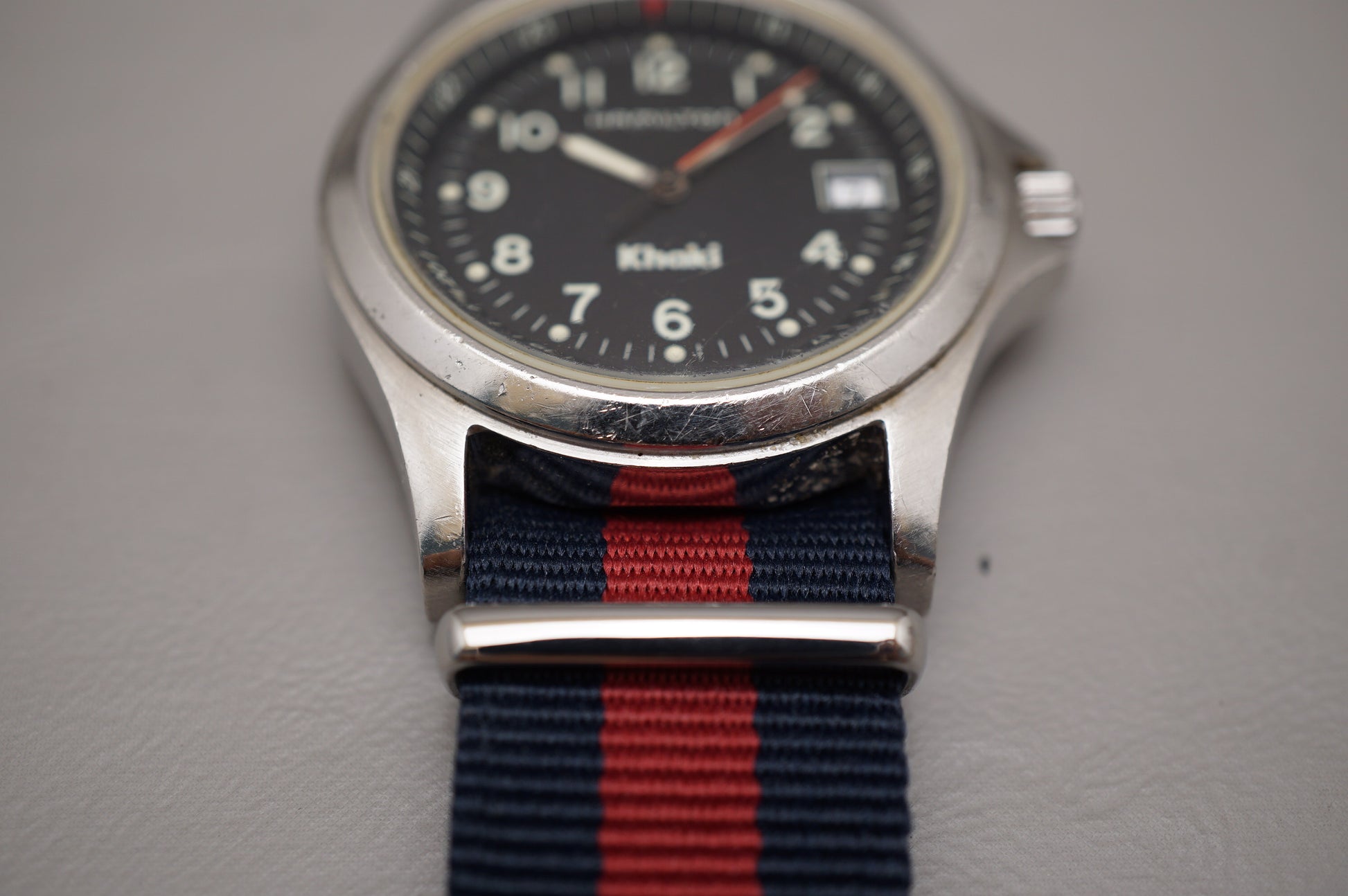 Wear on crystal, lume deterioration on minutes hand. Rare find with the US Navy caseback.