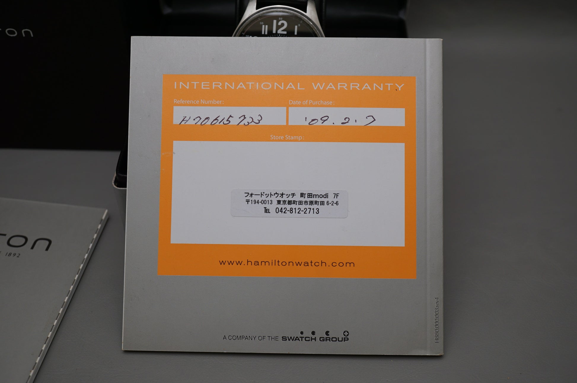 Warranty card: Stamped 09.2.7