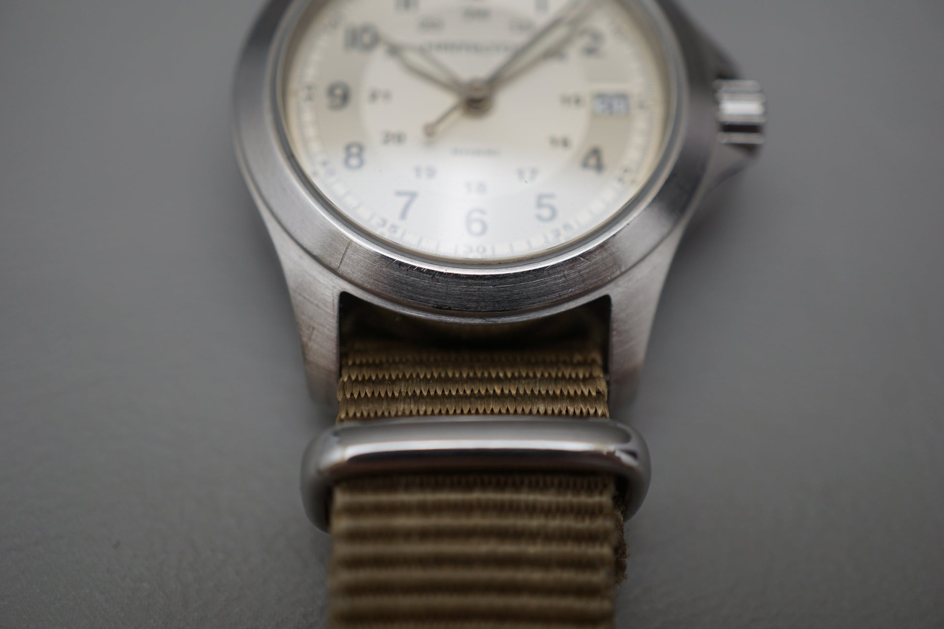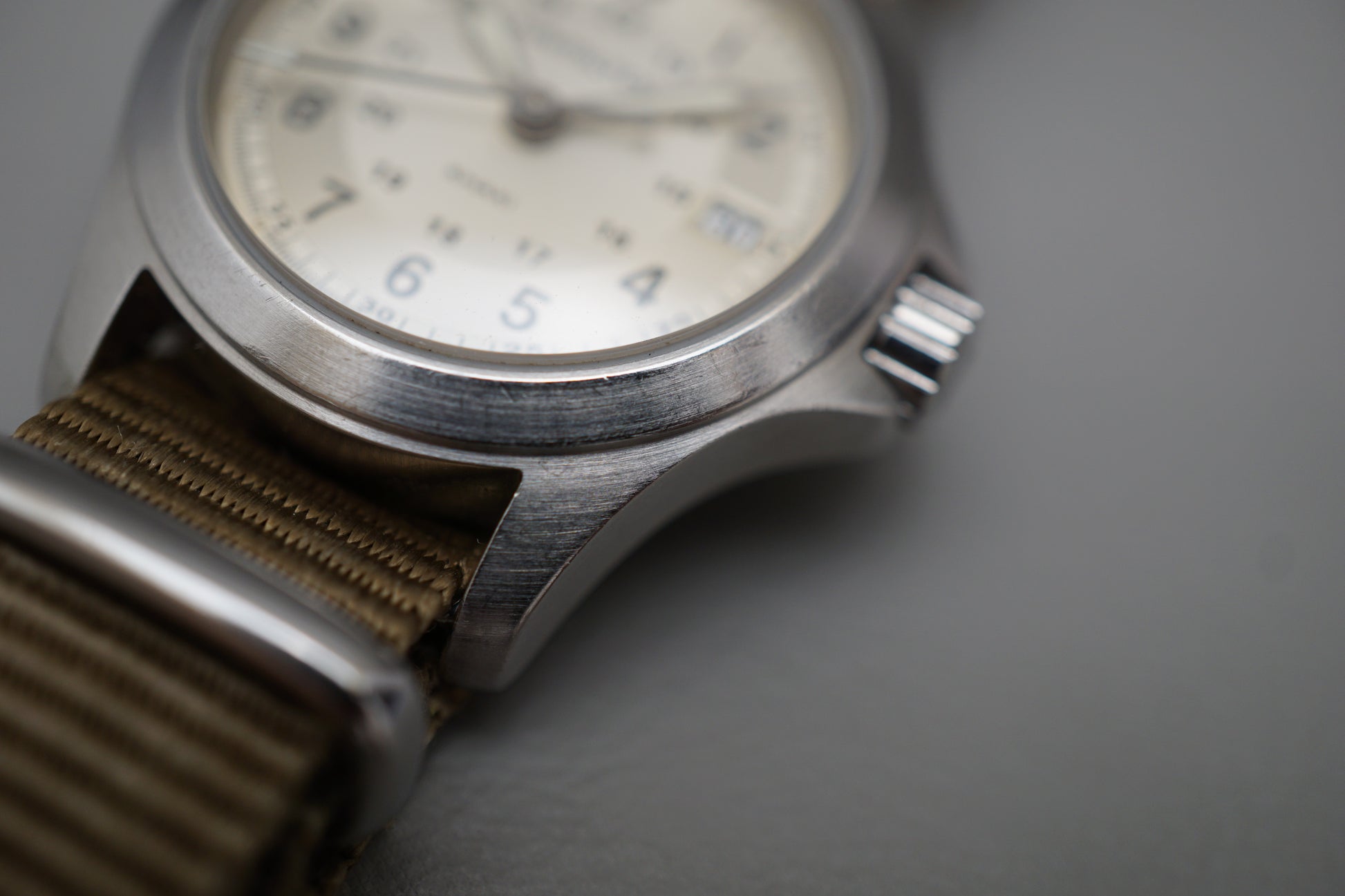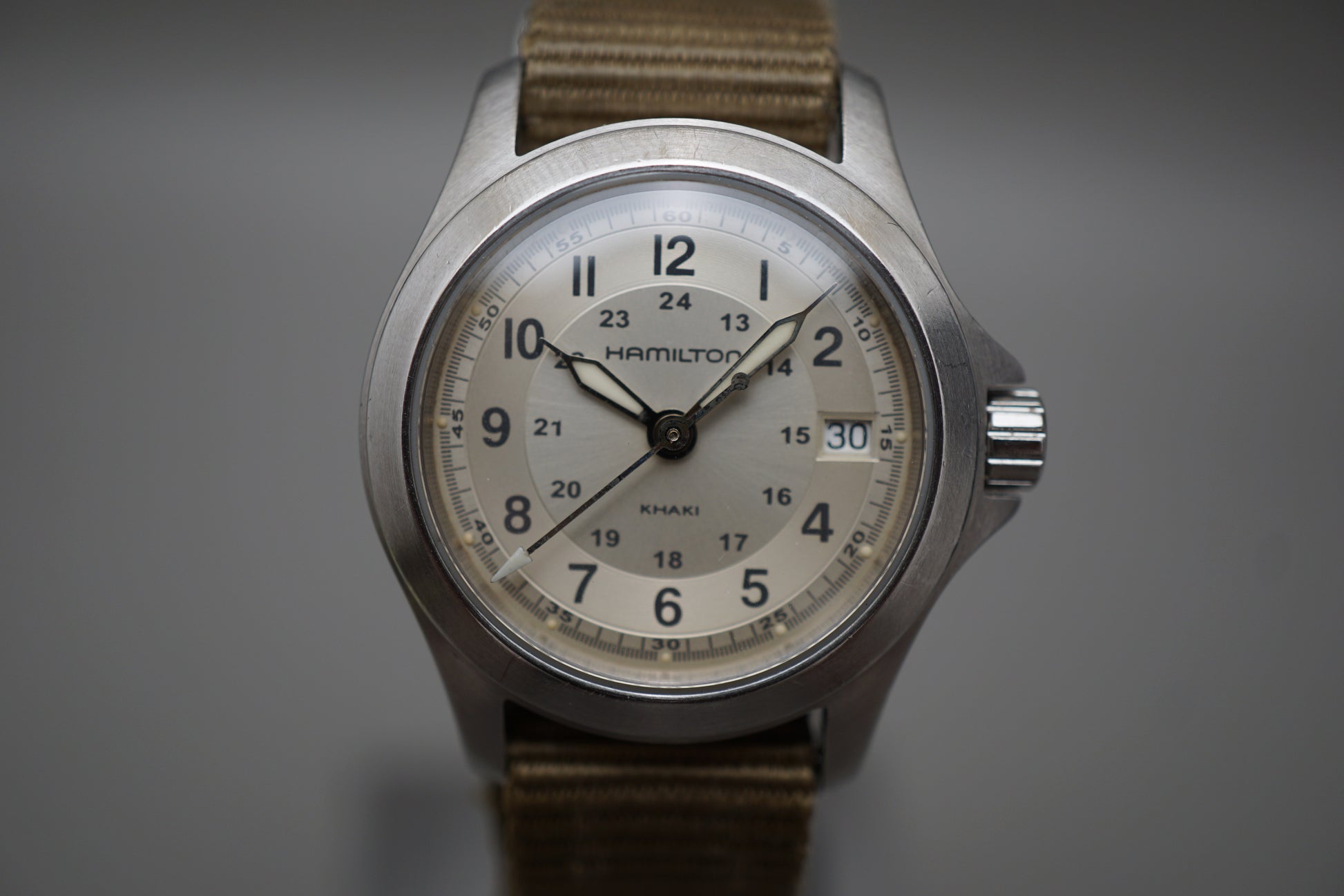 For sale is a Hamilton Khaki H642110 Field Silver Dial Ladies Quartz Watch