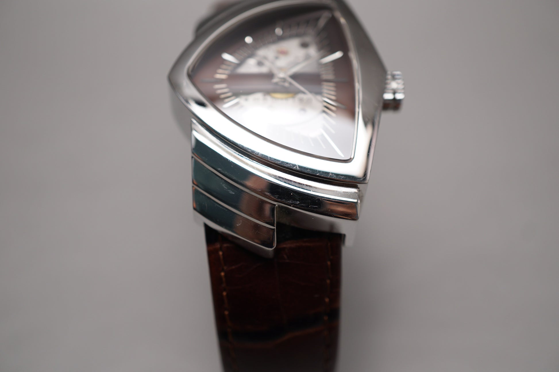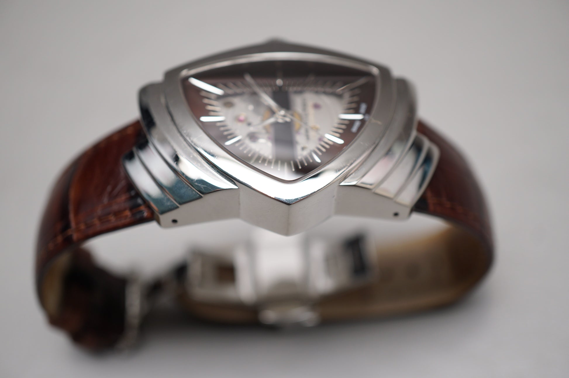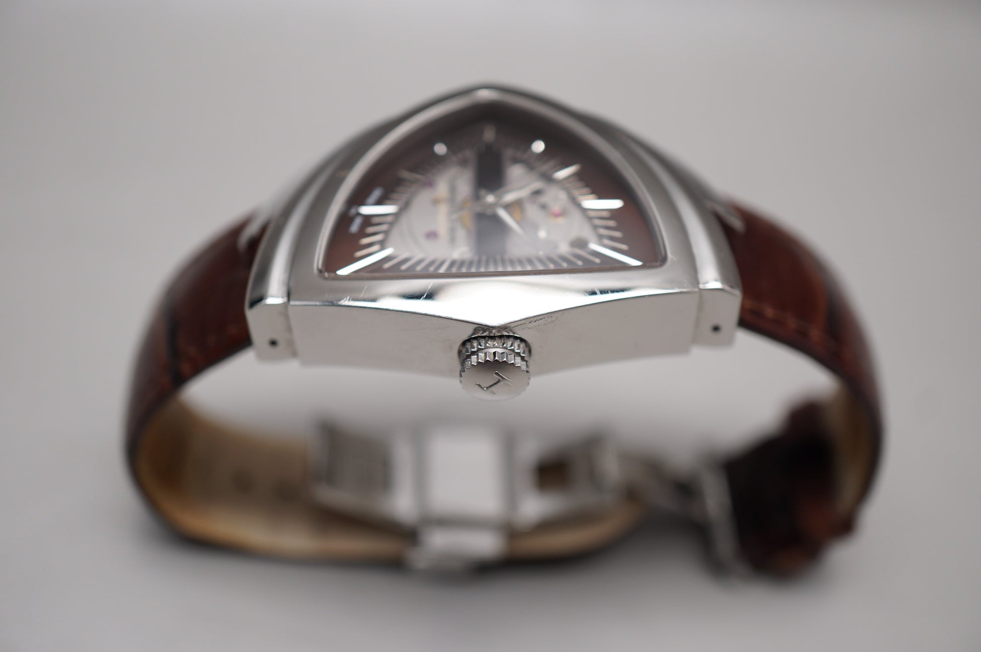 For sale is a Hamilton Ventura H24515591 Brown Dial Skeleton Automatic Watch