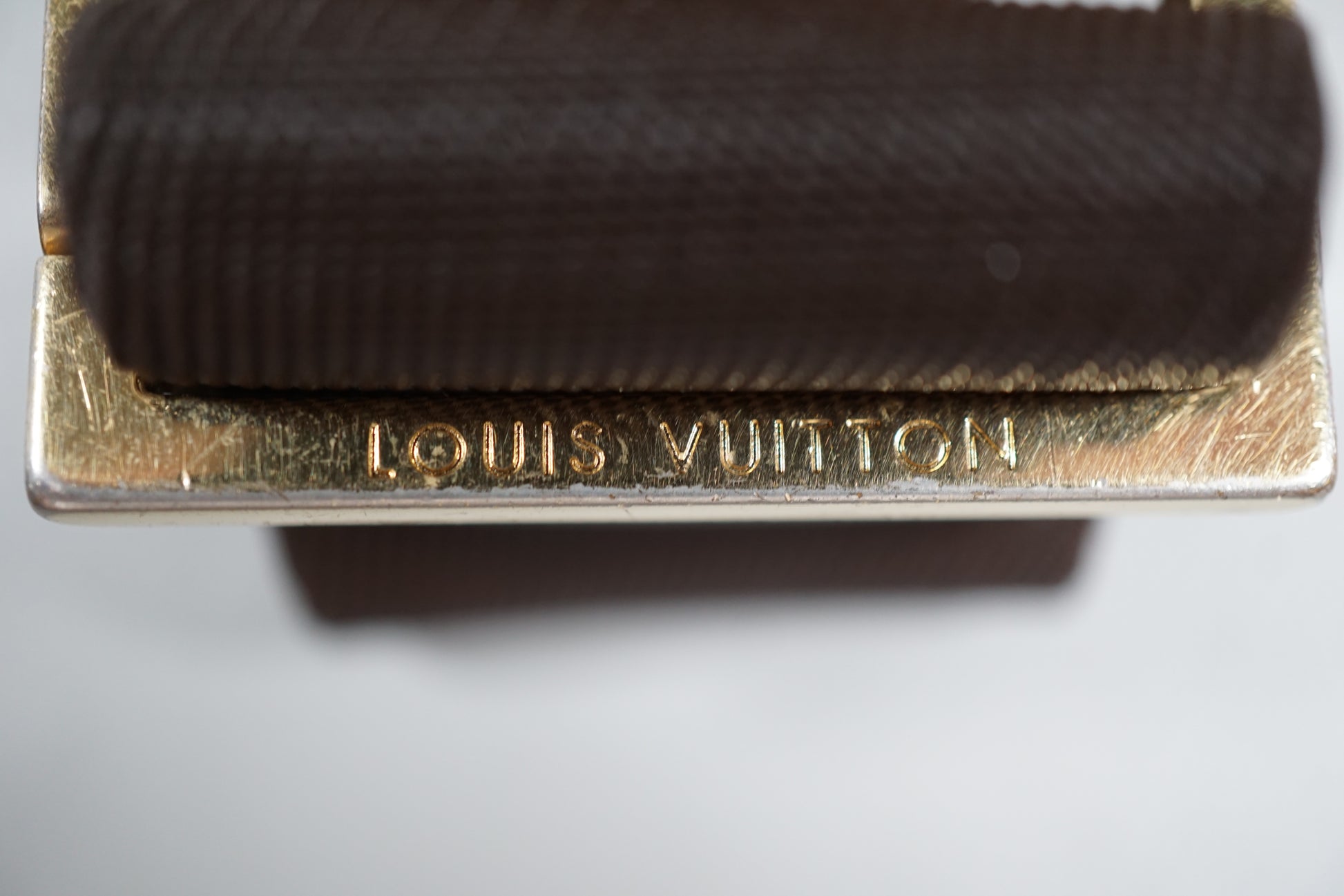 Condition outside: Discoloration on surface, wear on edging. Missing hardware at the end of the strap.