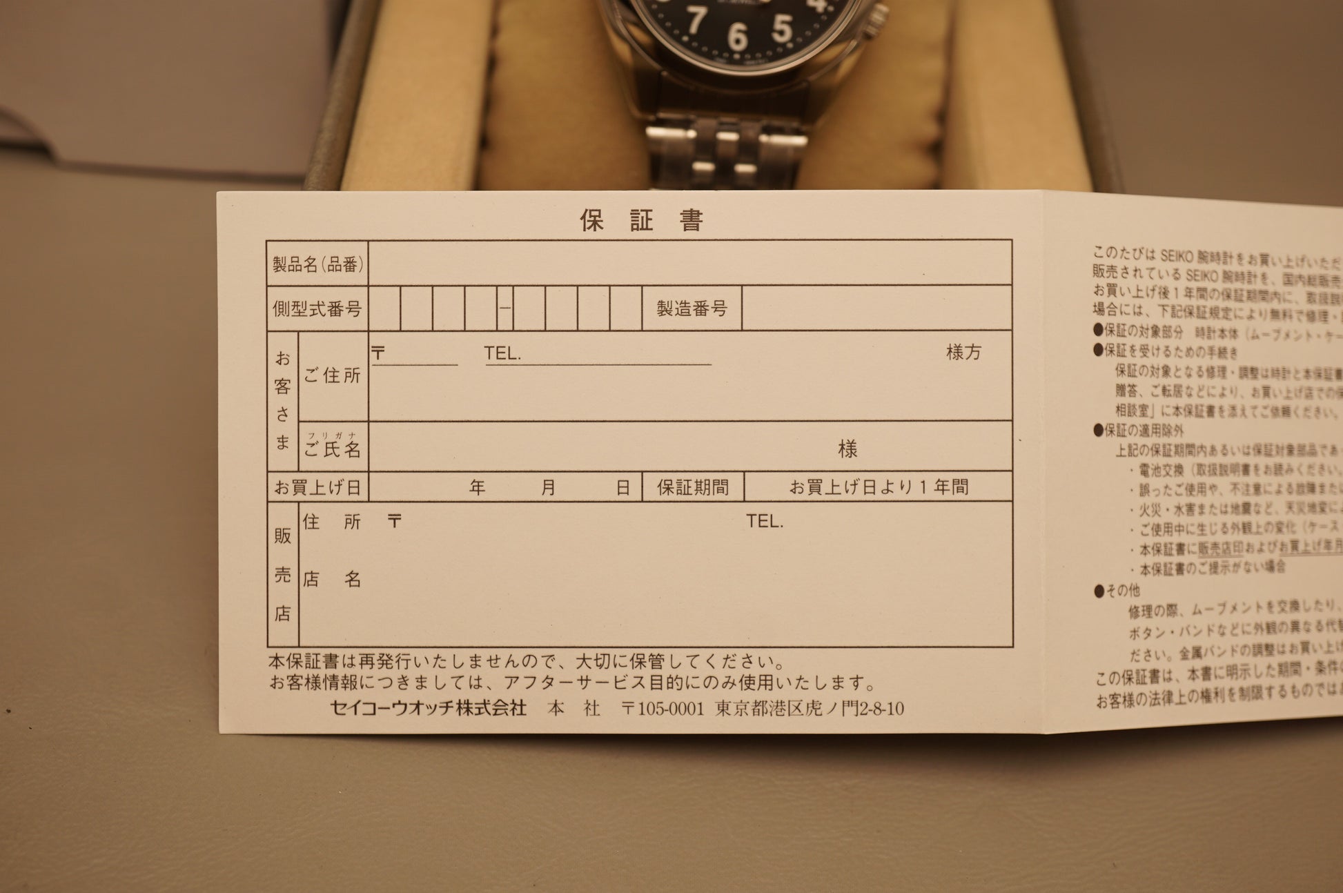 Warranty card: Blank