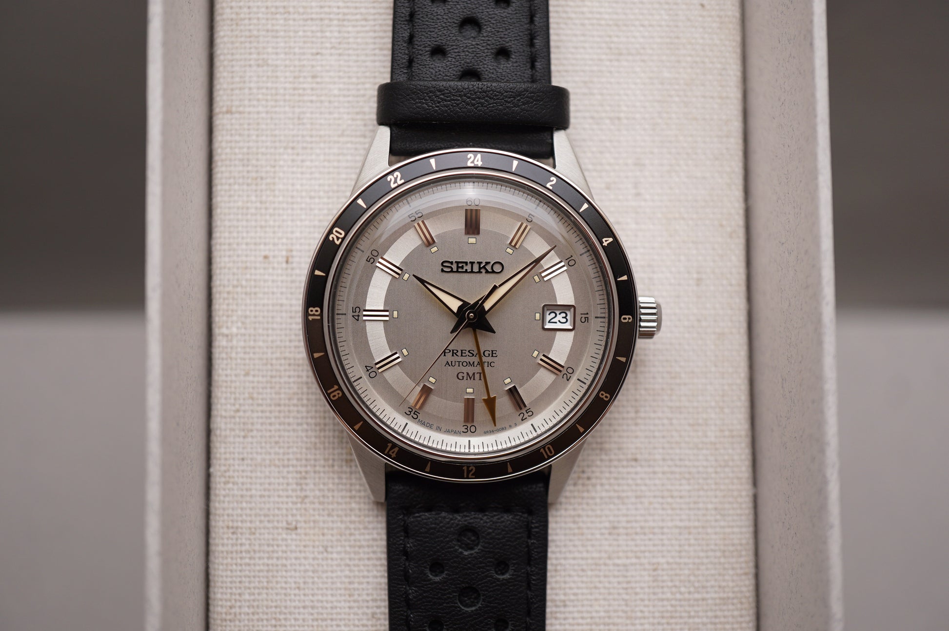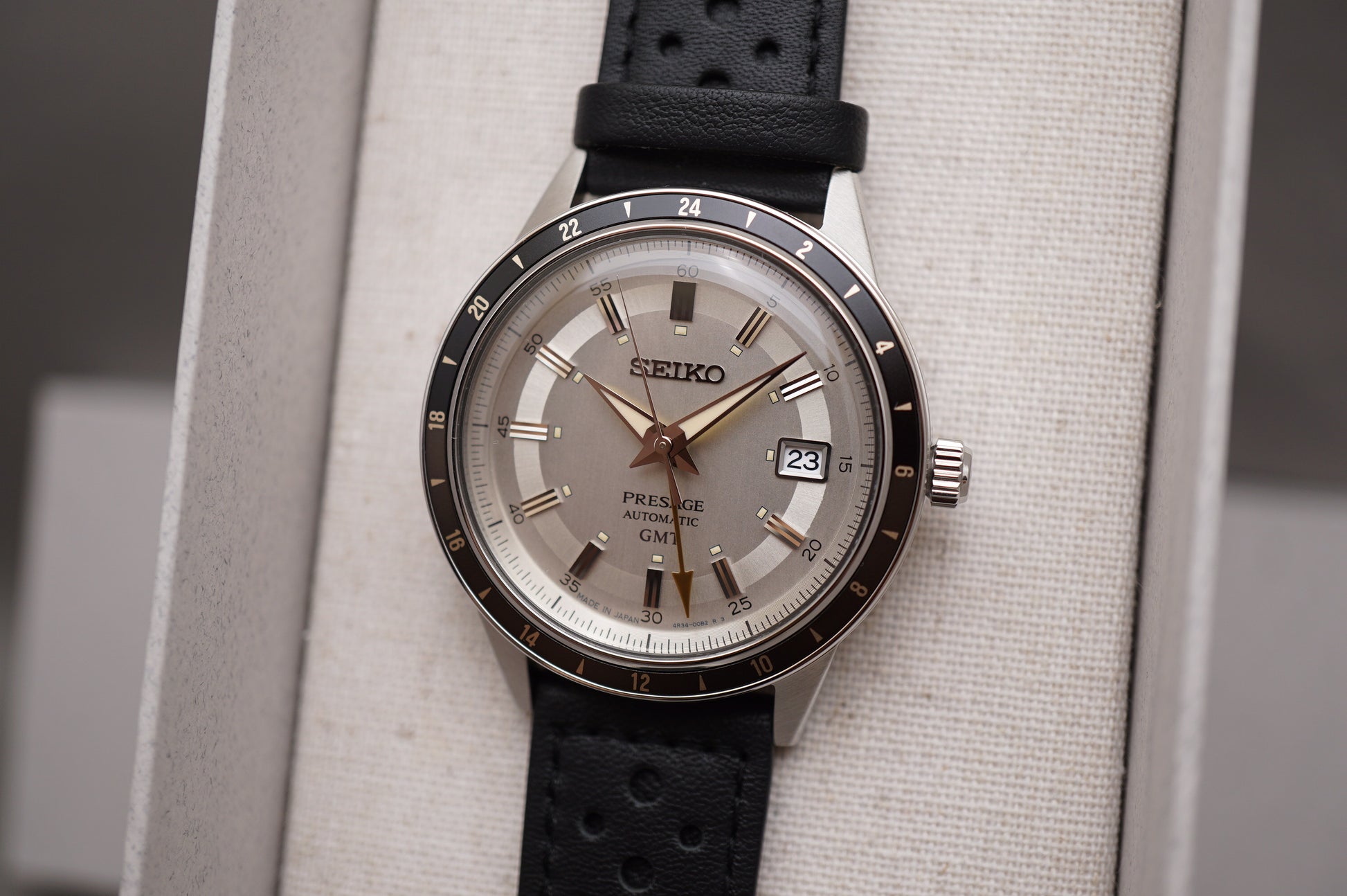 For sale is a Seiko Presage SARY231 Style60S GMT Silver Dial Automatic Watch