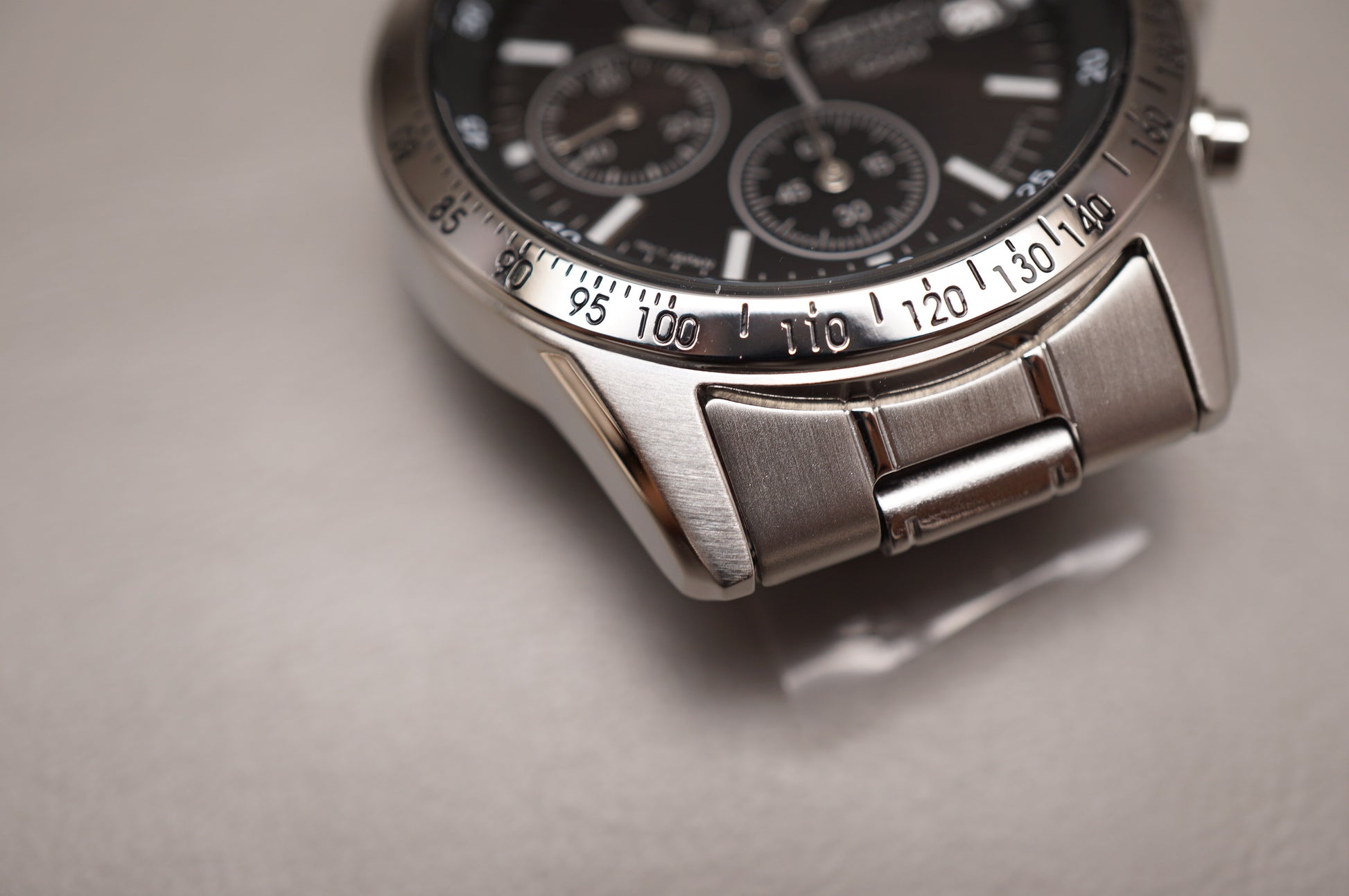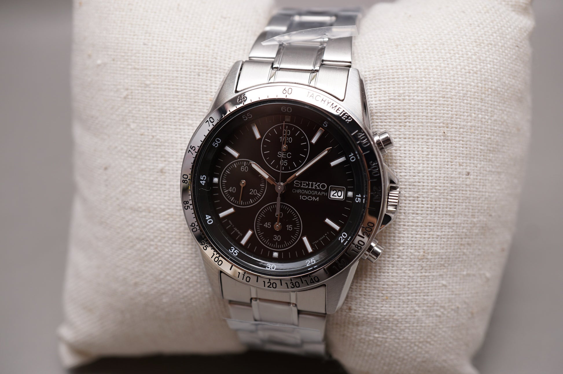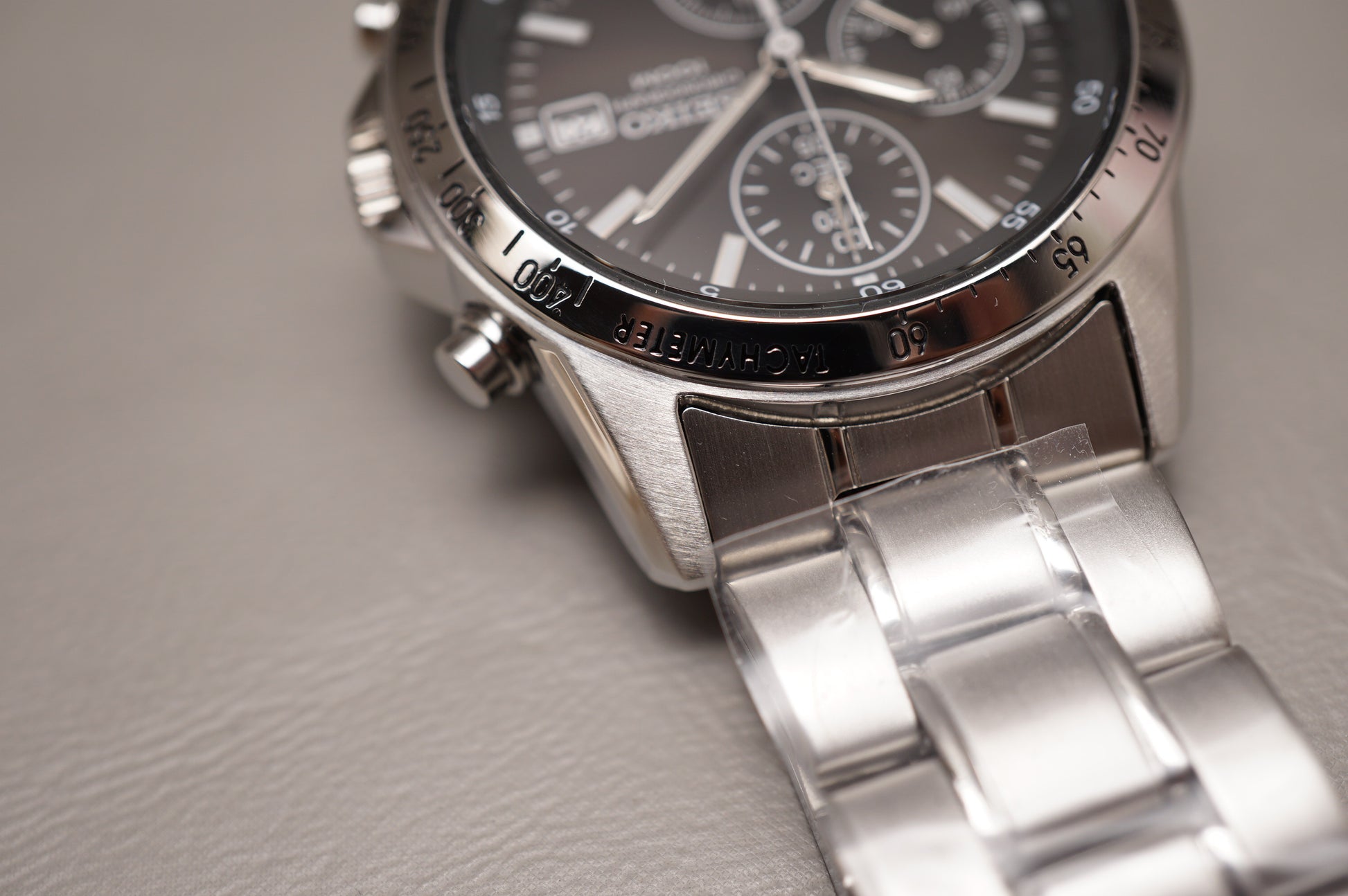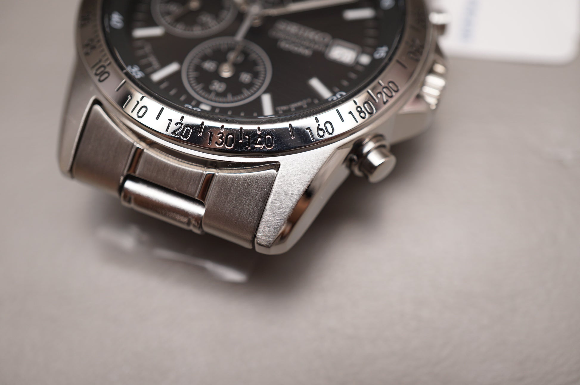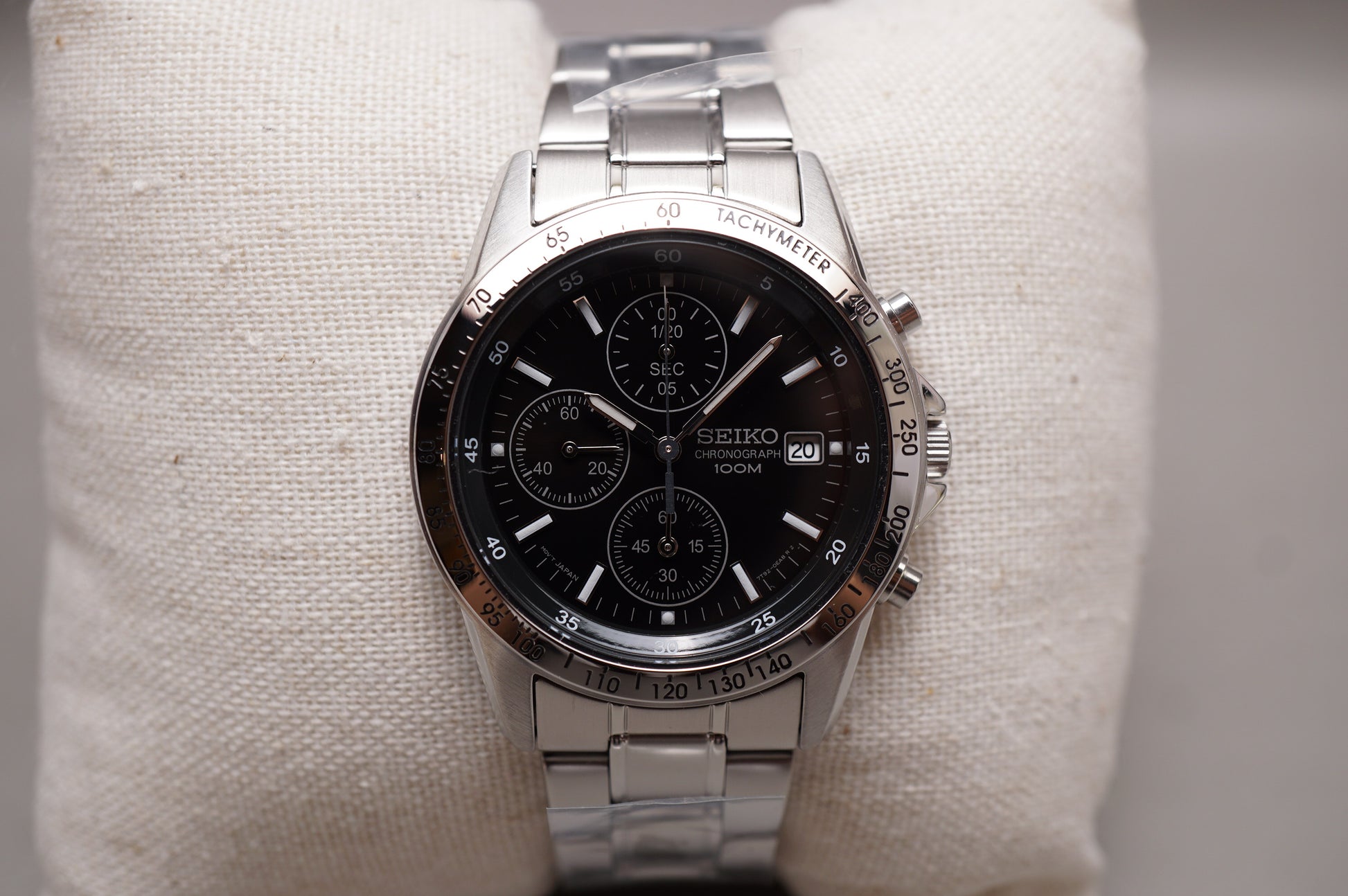 For sale is a Seiko SND367PC Black Dial Chronograph Tachymeter Quartz Watch