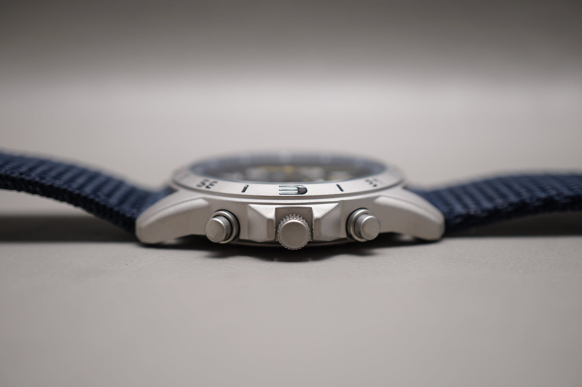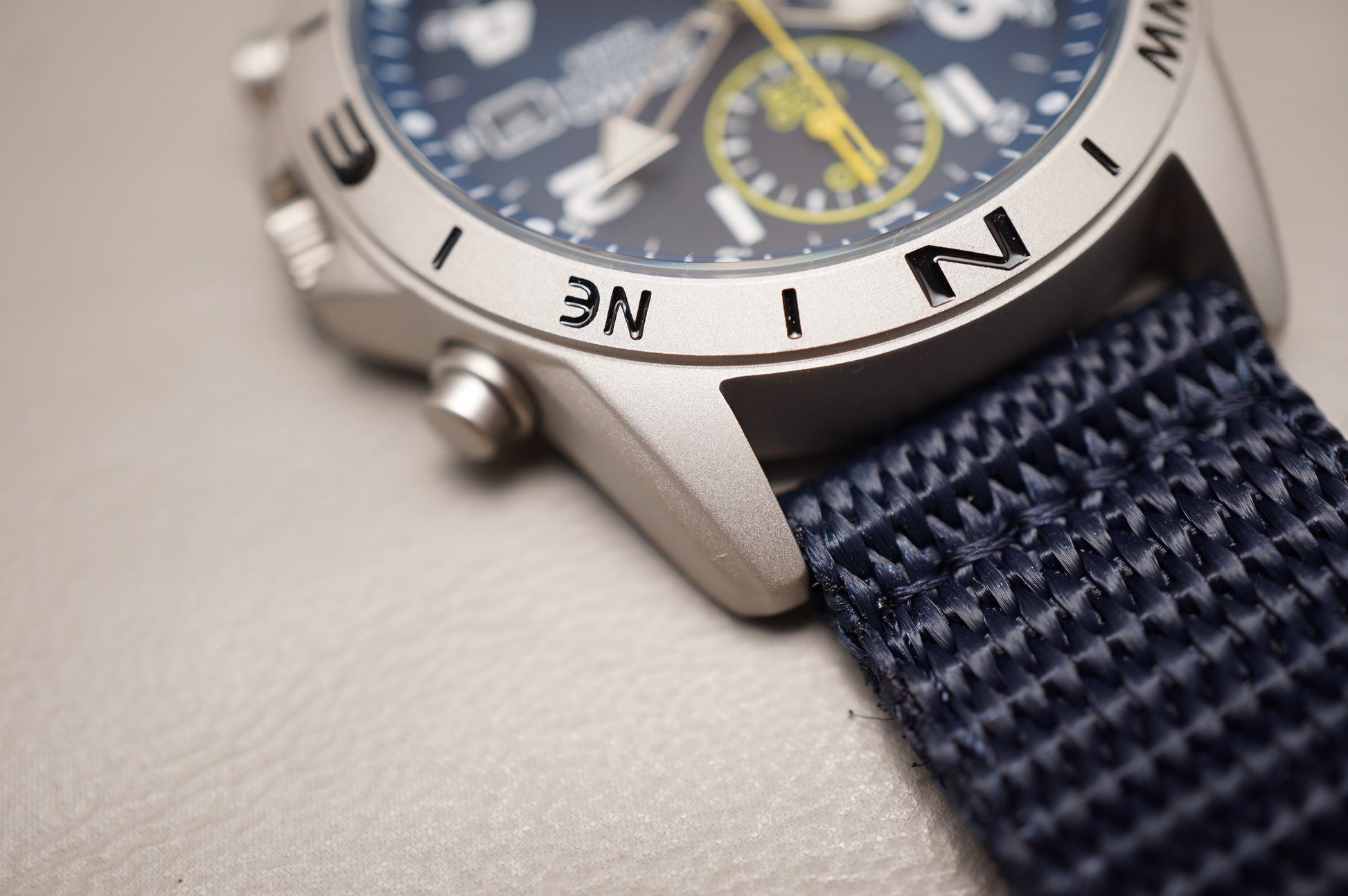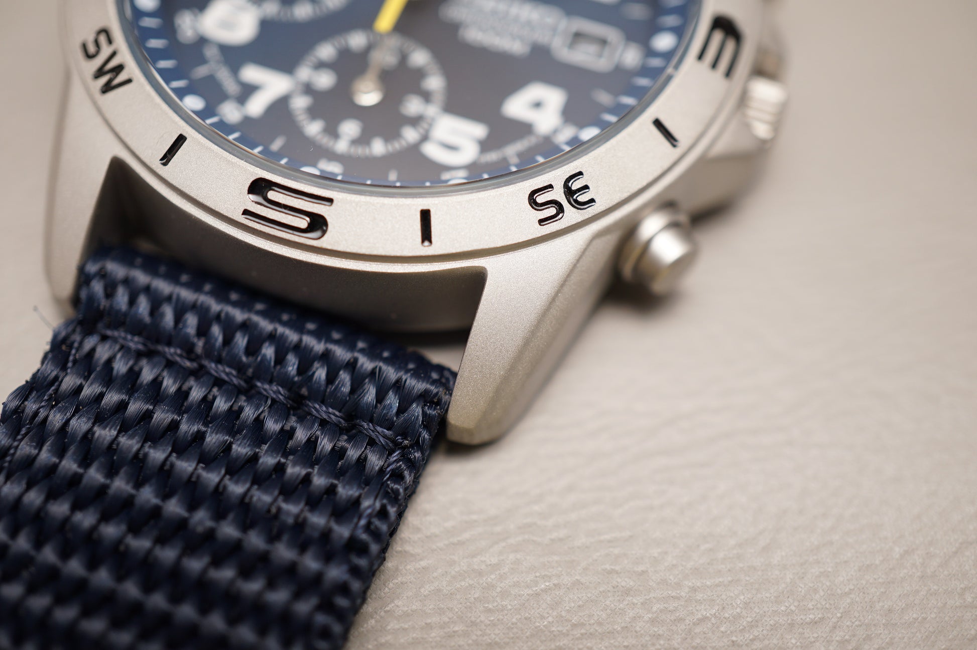 For sale is a Seiko SND379R Nylon Strap Blue Dial Field Style Chronograph Quartz Watch