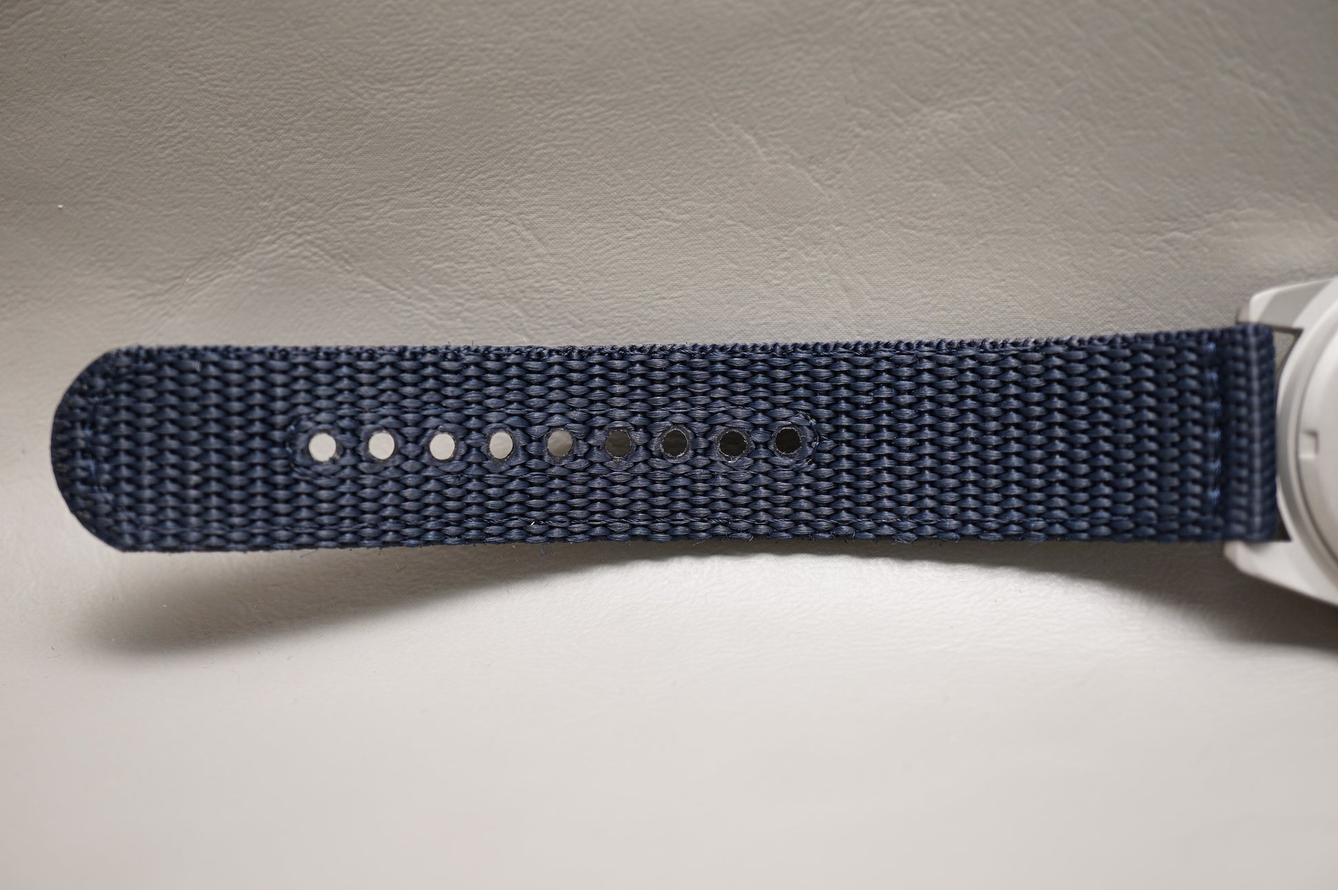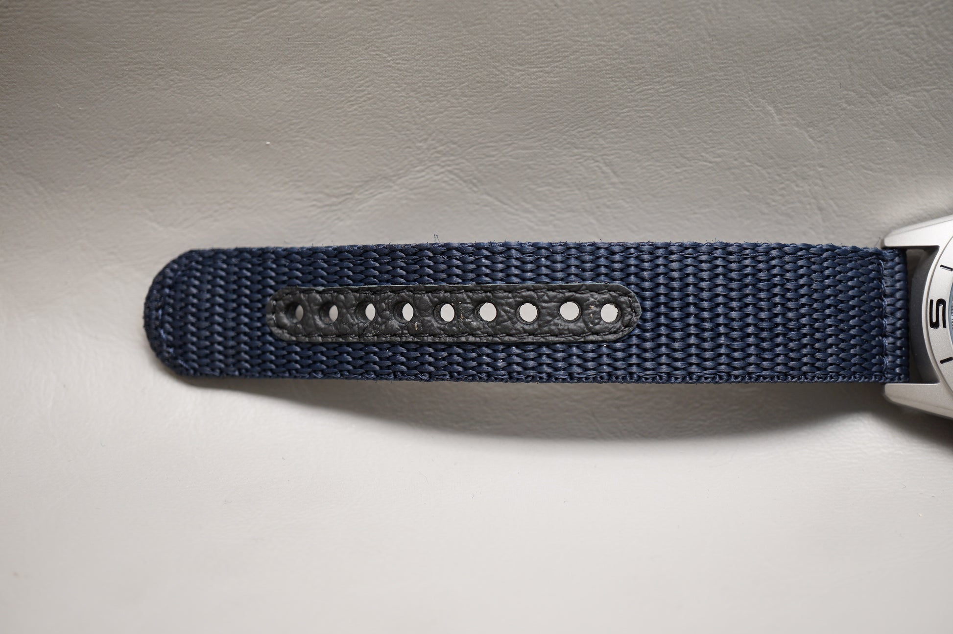 New Seiko SND379R 7T92 Nylon Strap Blue Dial Field Chronograph Quartz Watch