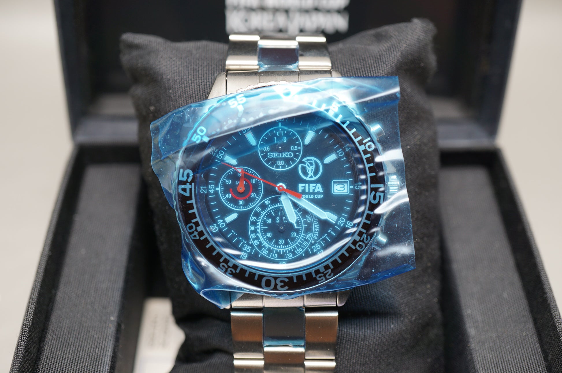 NOS Seiko SCQP001 V657-0AA0 V657 2002 FIFA World Cup Black Dial Quartz Watch