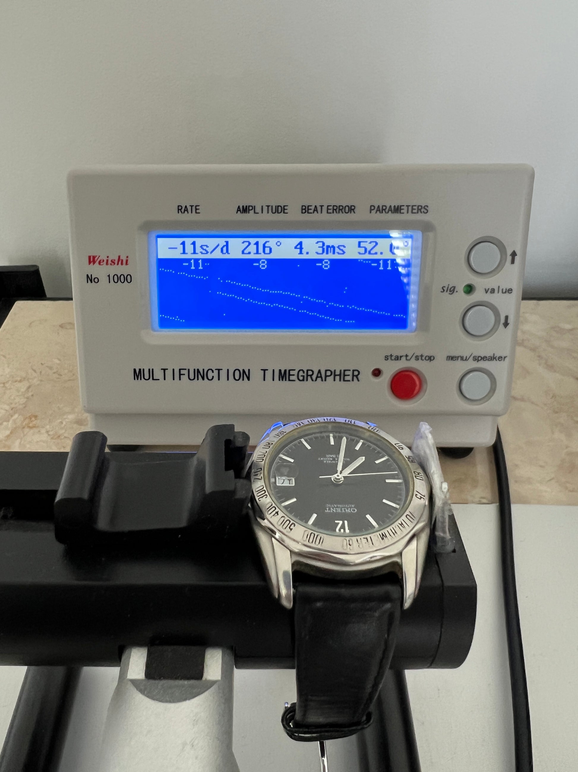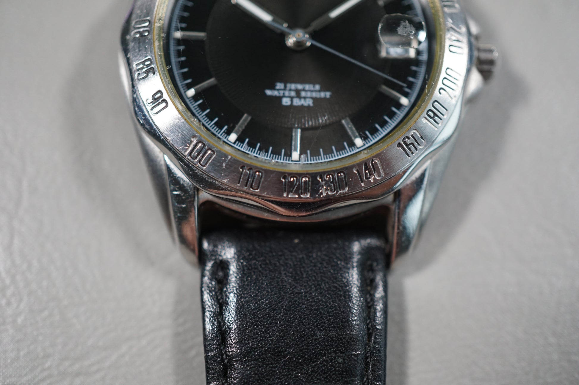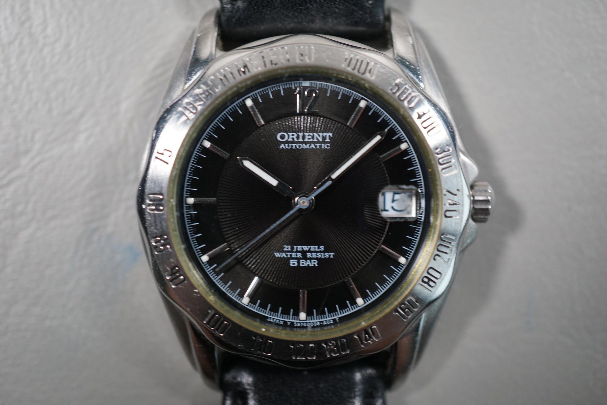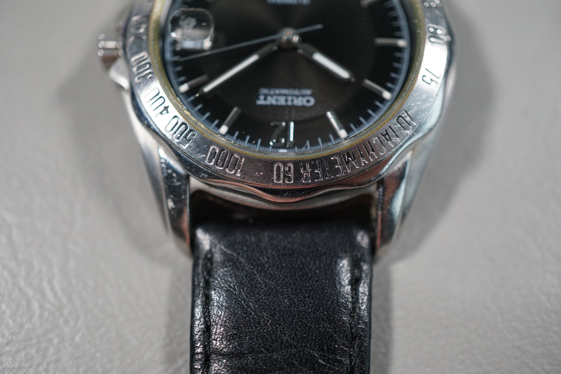 For sale is a Orient 597704-60 CS Black Dial 5 Bar Tachymeter Automatic Watch
