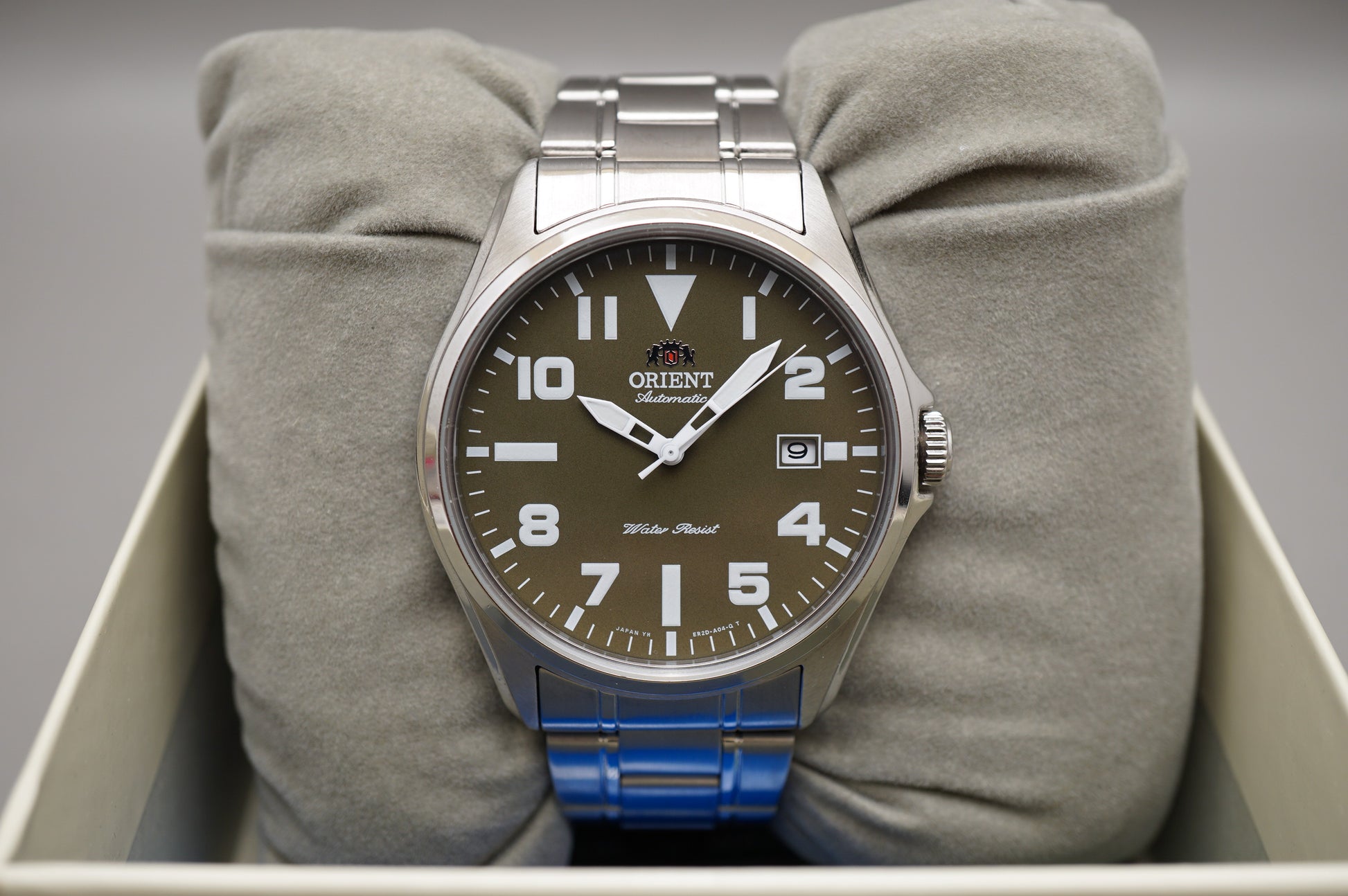 For sale is a Orient SER2D006F0 Military Green Dial Field Style Automatic Watch