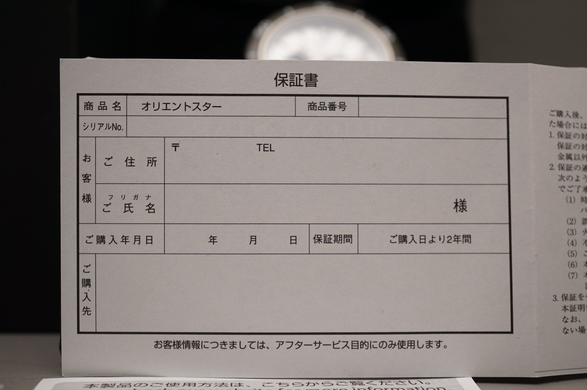 Warranty card: Blank