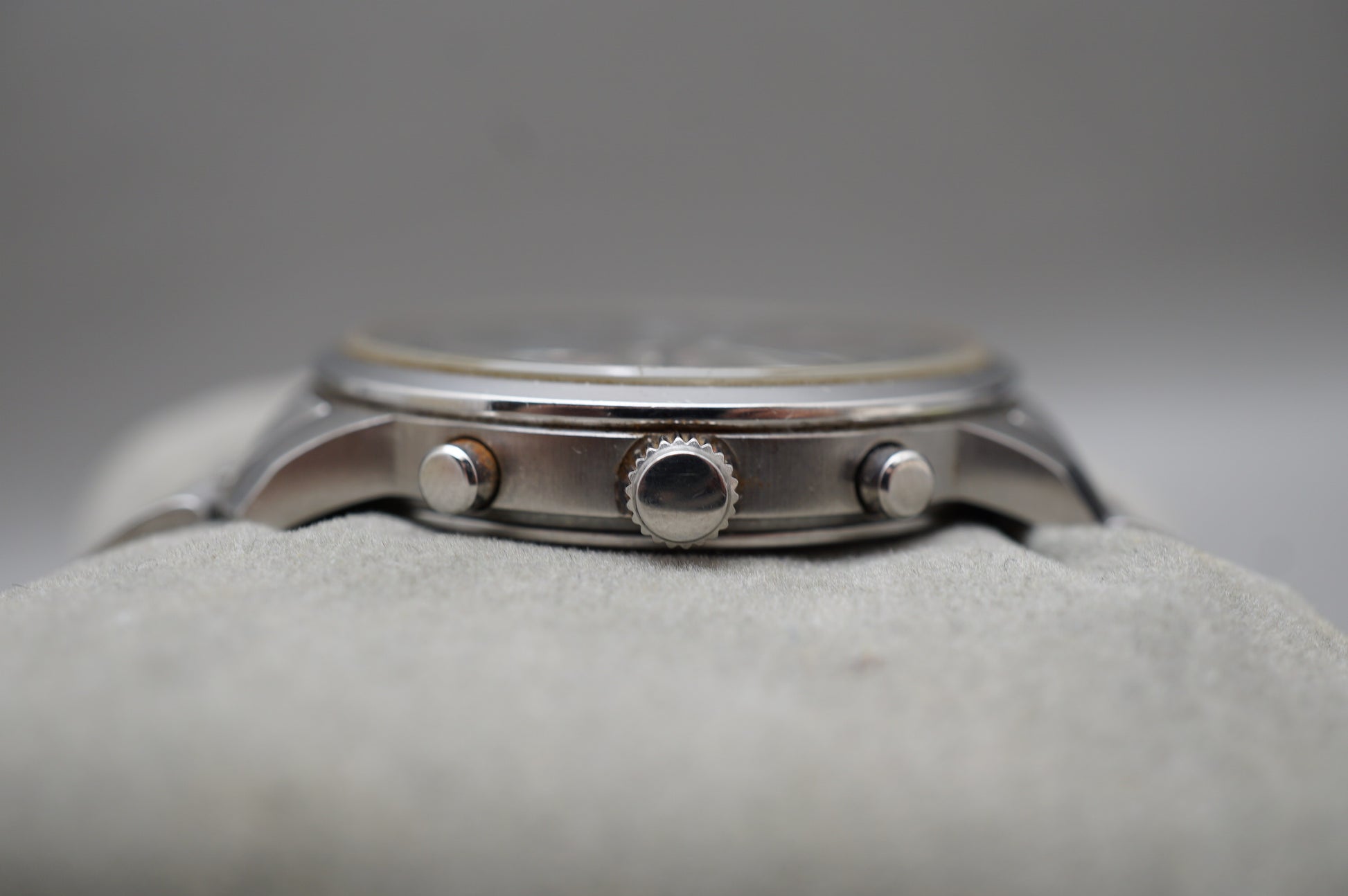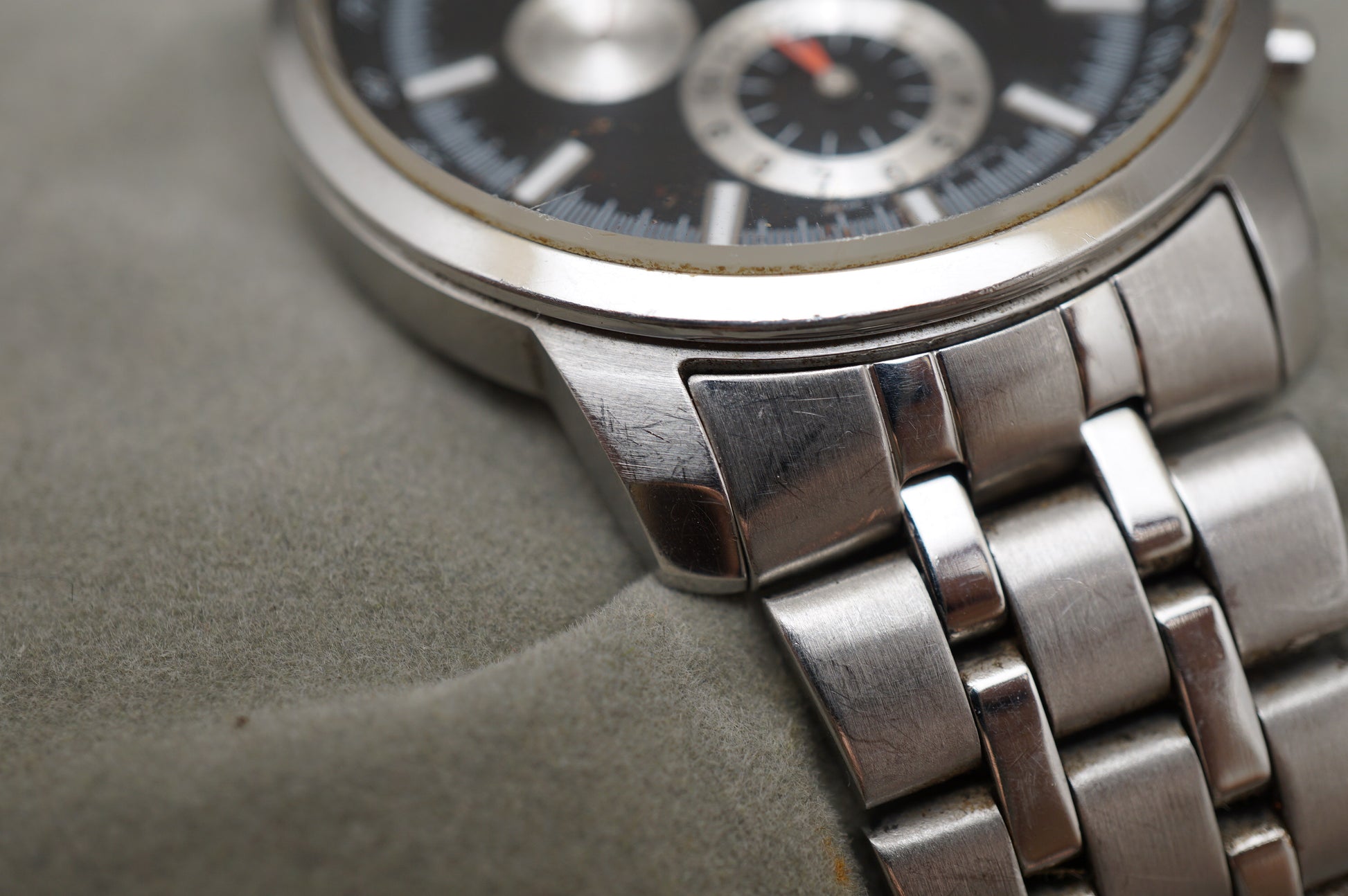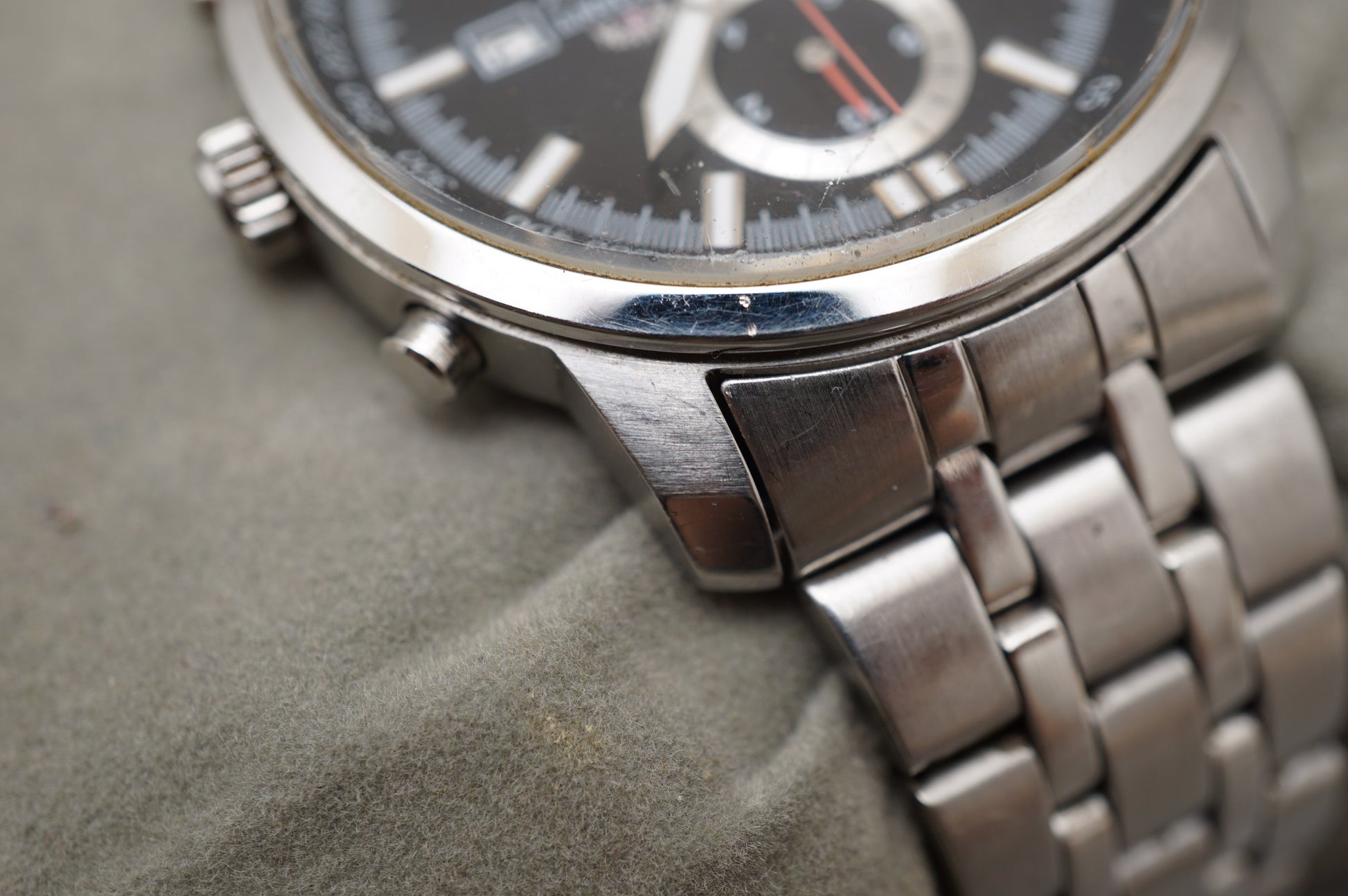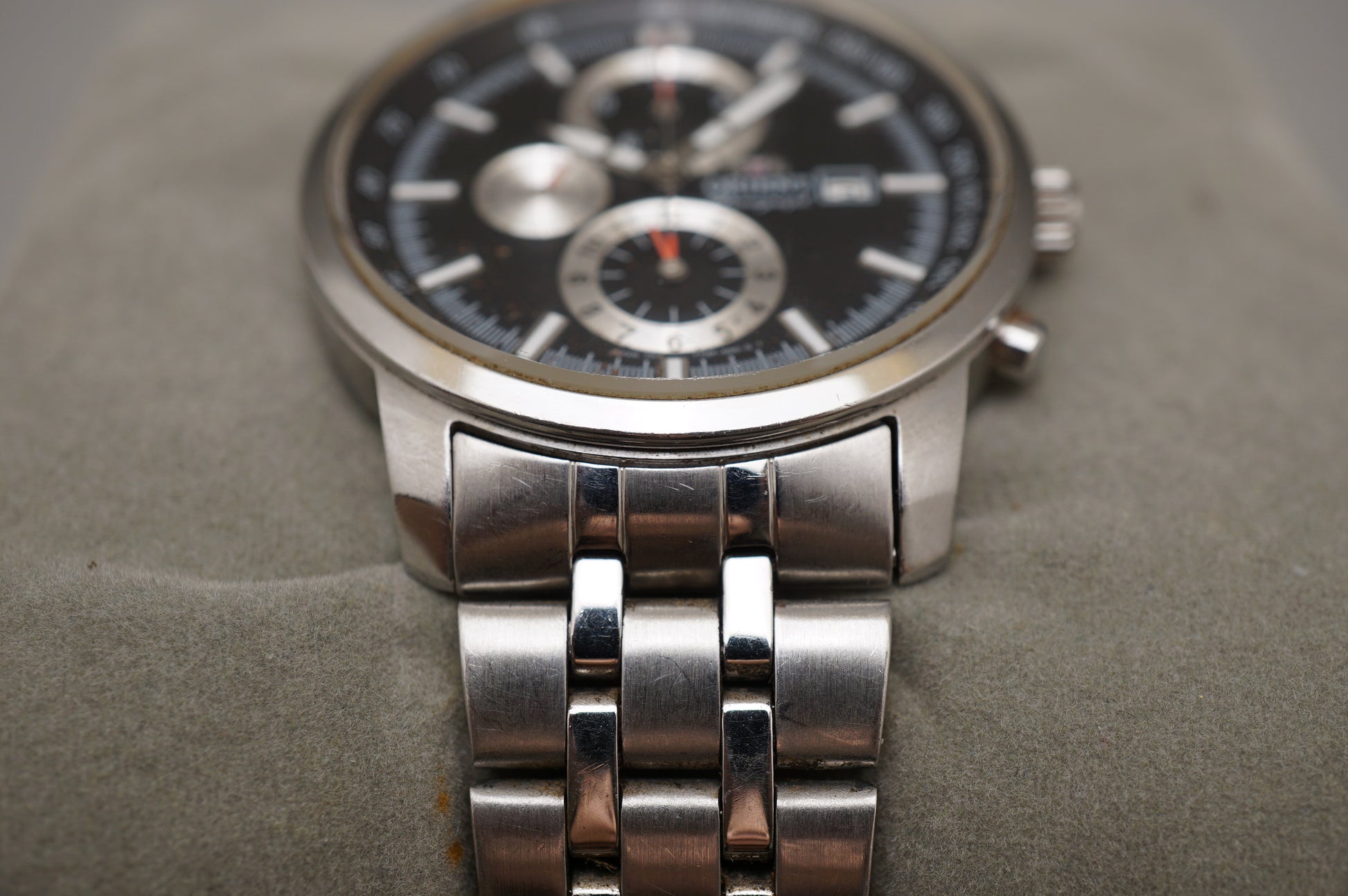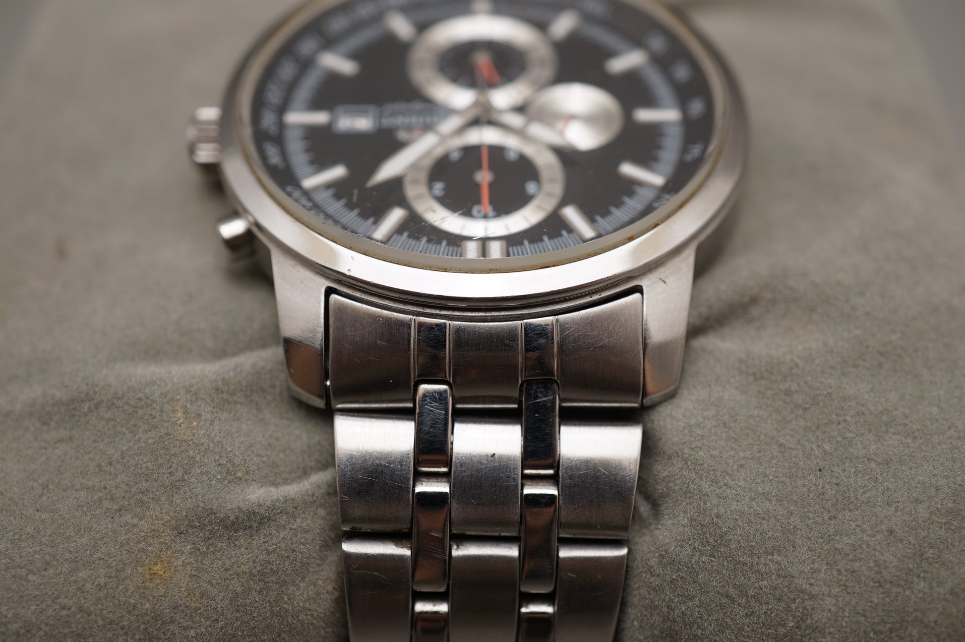 READ: Chronograph starts, stops, and resets. Wear on crystal, seconds hand subdial at 9 does not work.