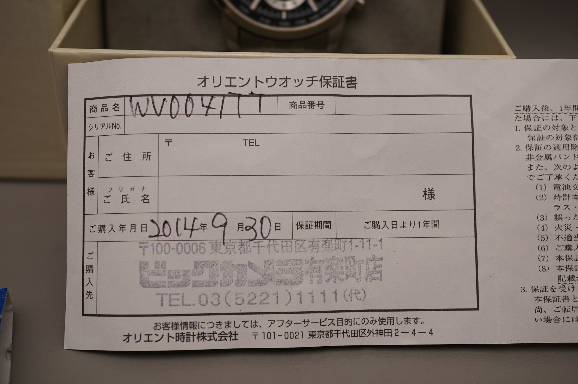 Warranty card: None 2014-9-30