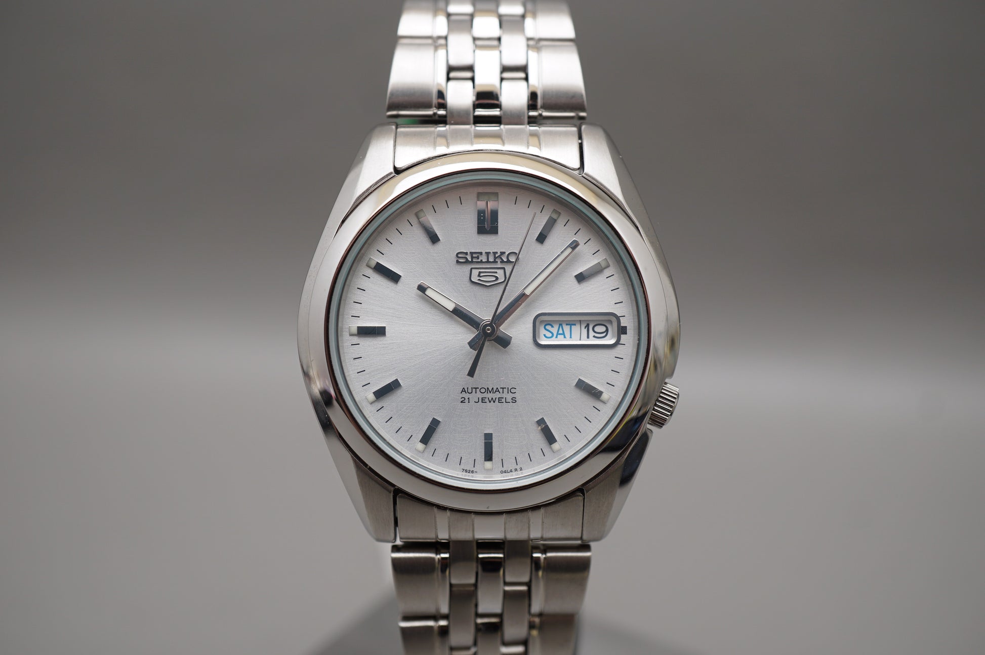 Seiko 5 SNK355K1 7S26 Silver 5 Motif Dial Automatic Watch