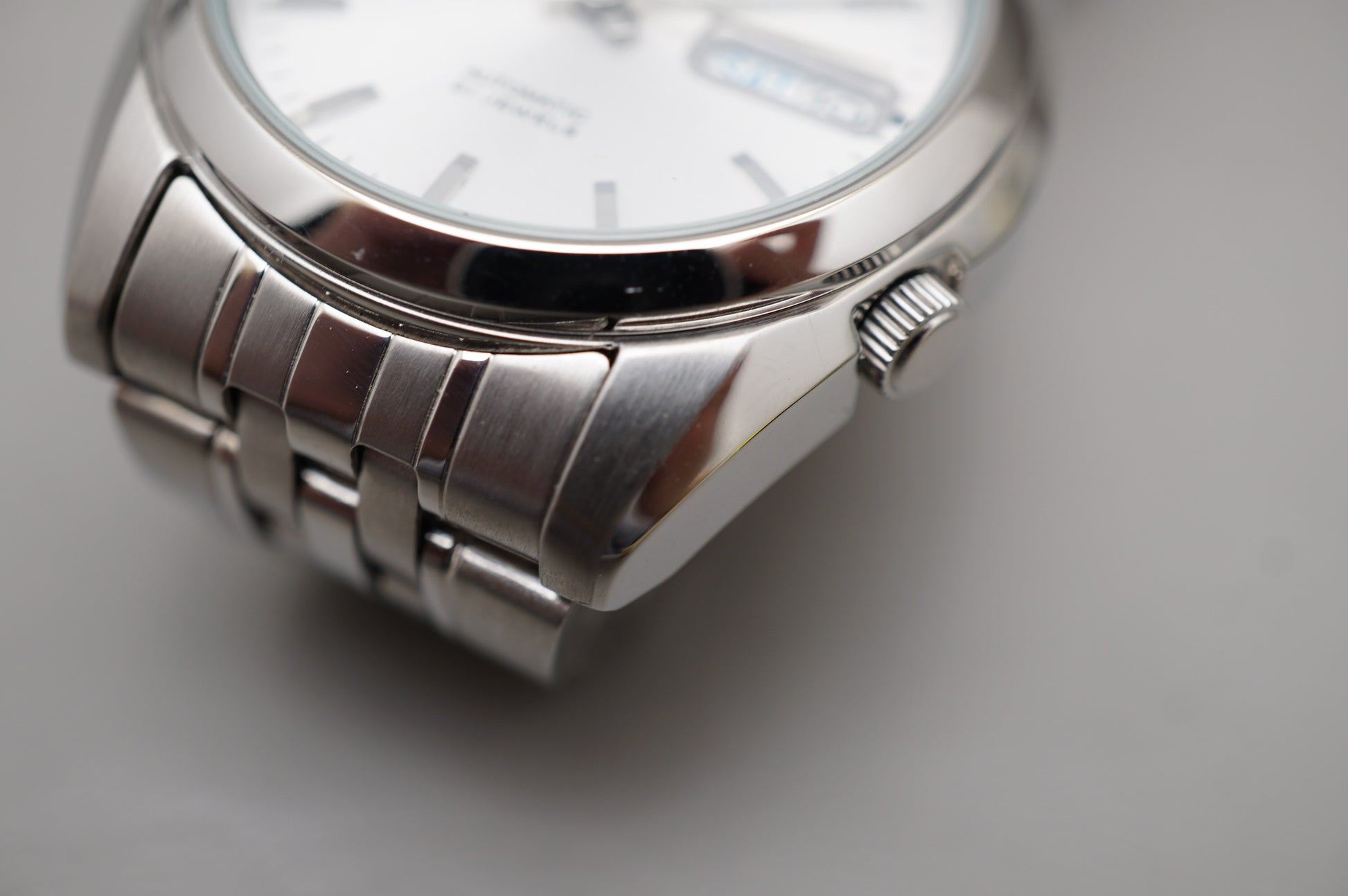 For sale is a Seiko 5 SNK355K1 Silver 5 Motif Dial Automatic Watch