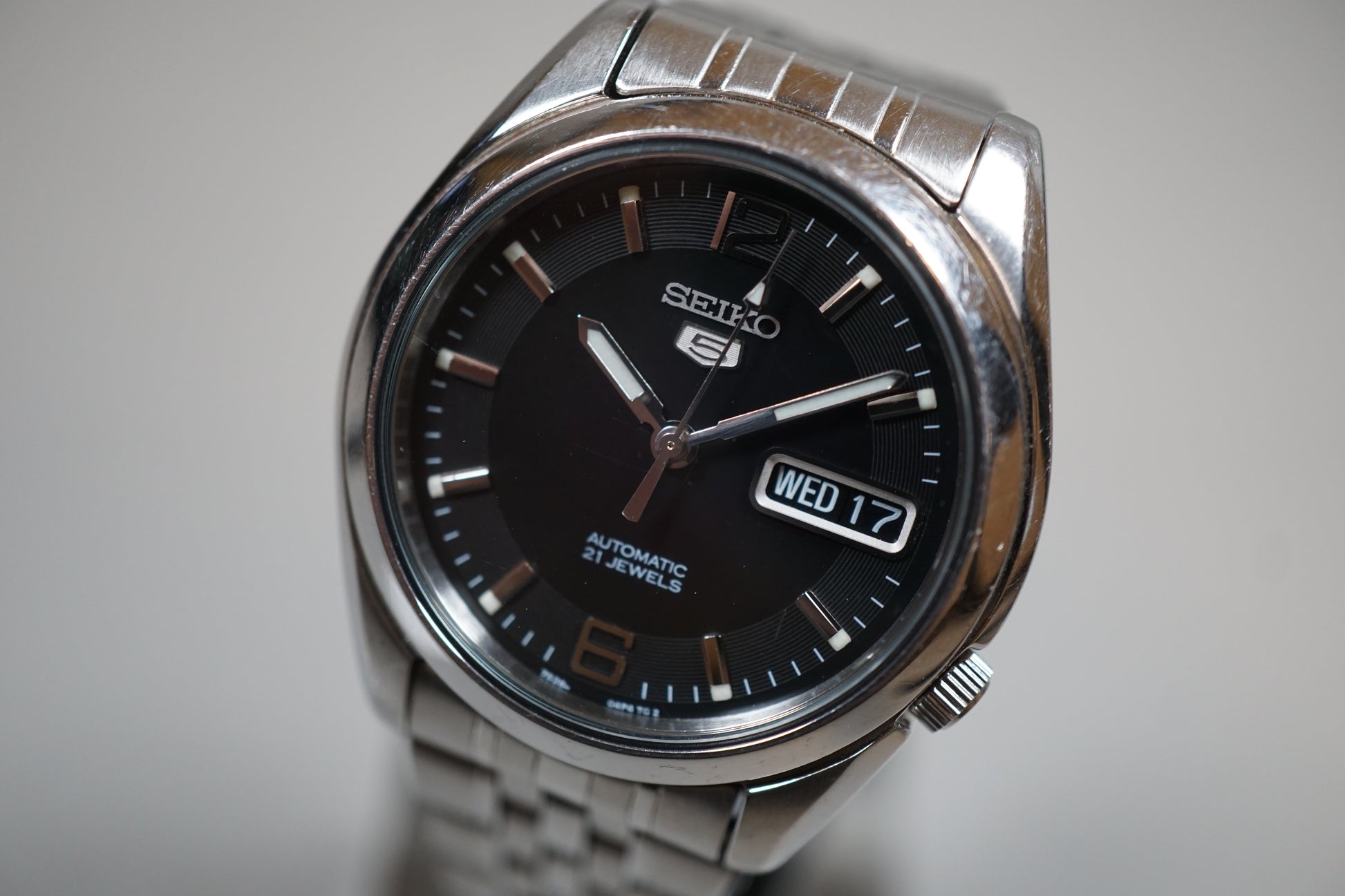 For sale is a Seiko 5 SNK393 Black Textured Dial Automatic Watch