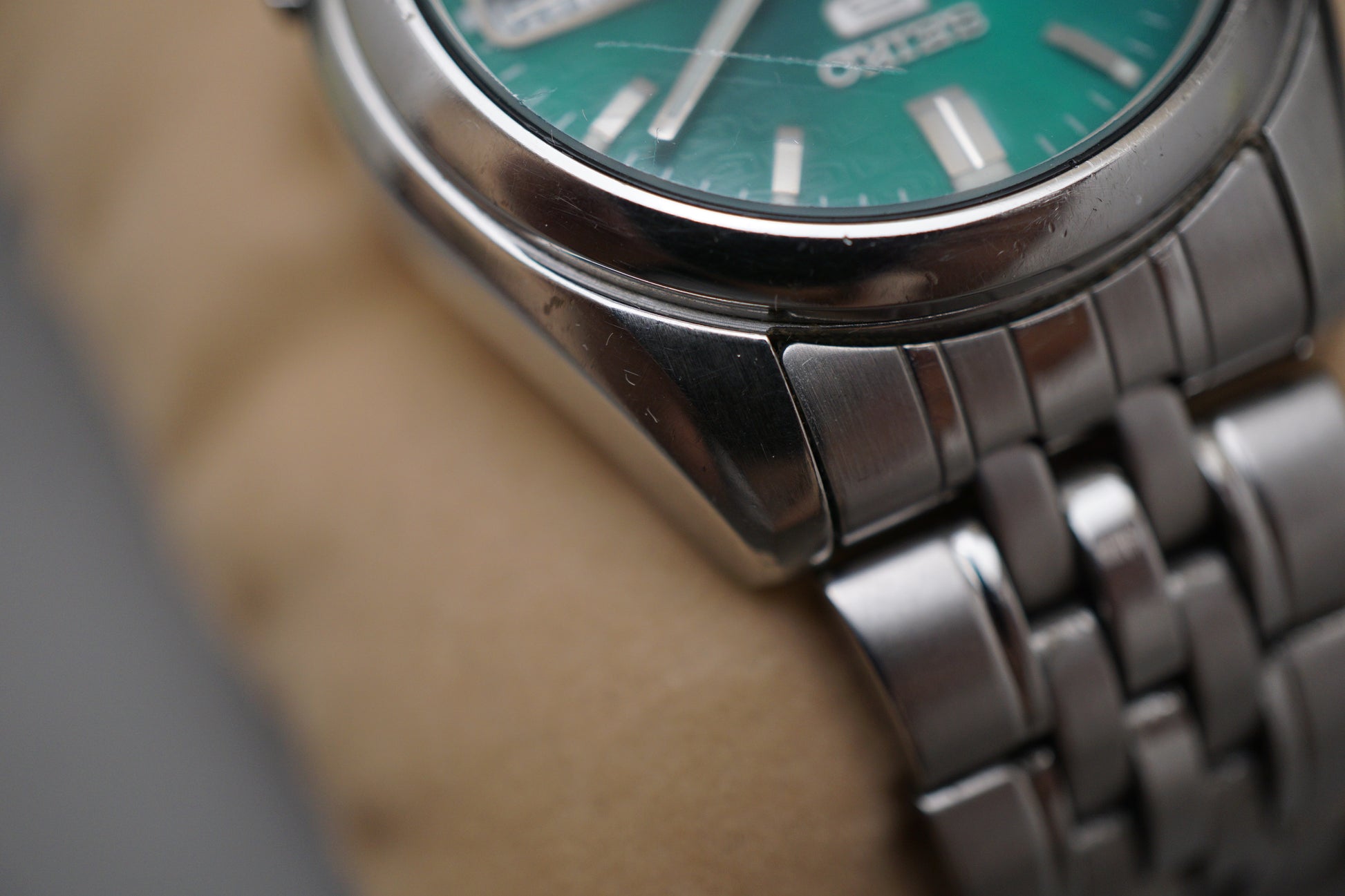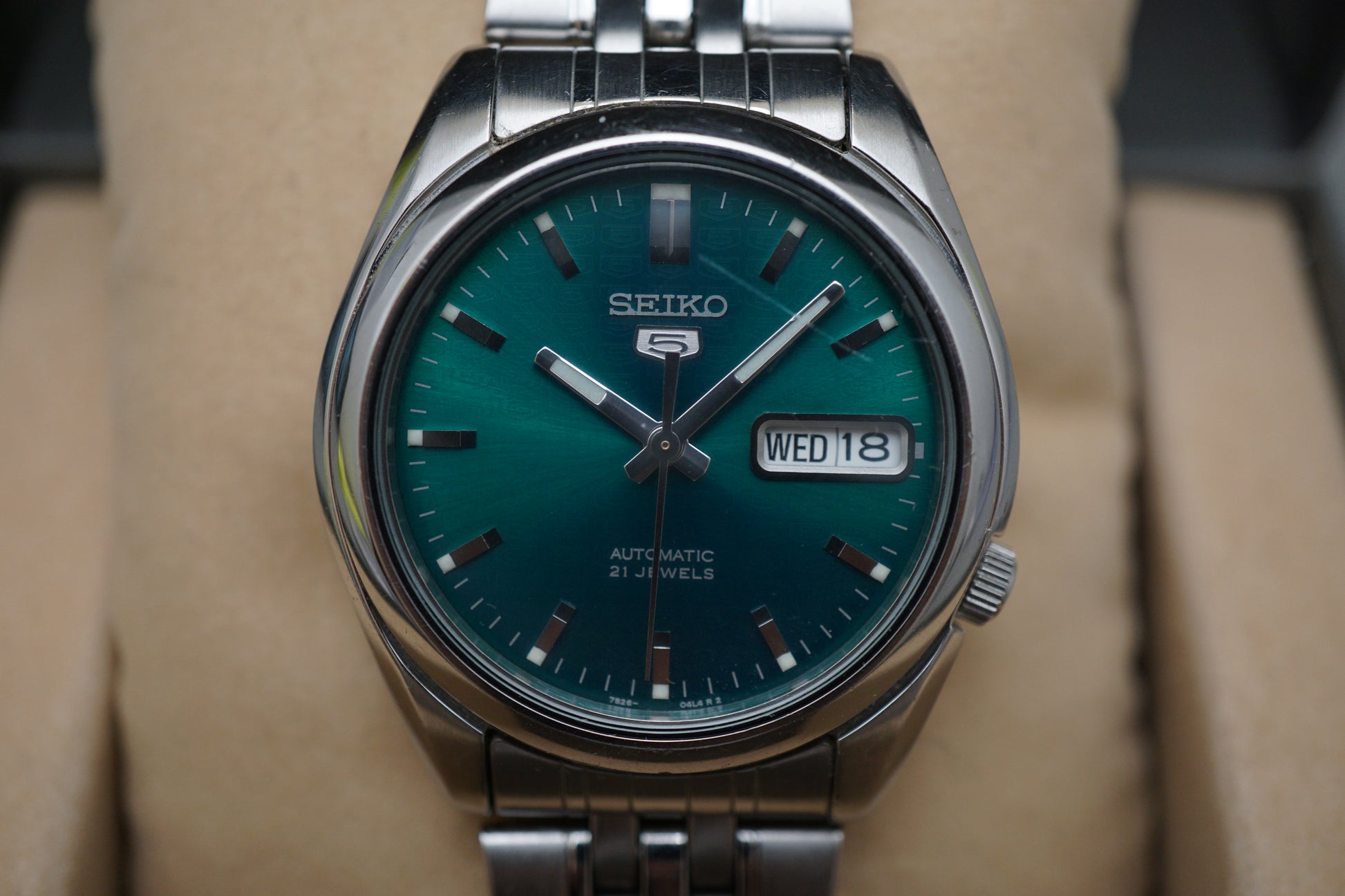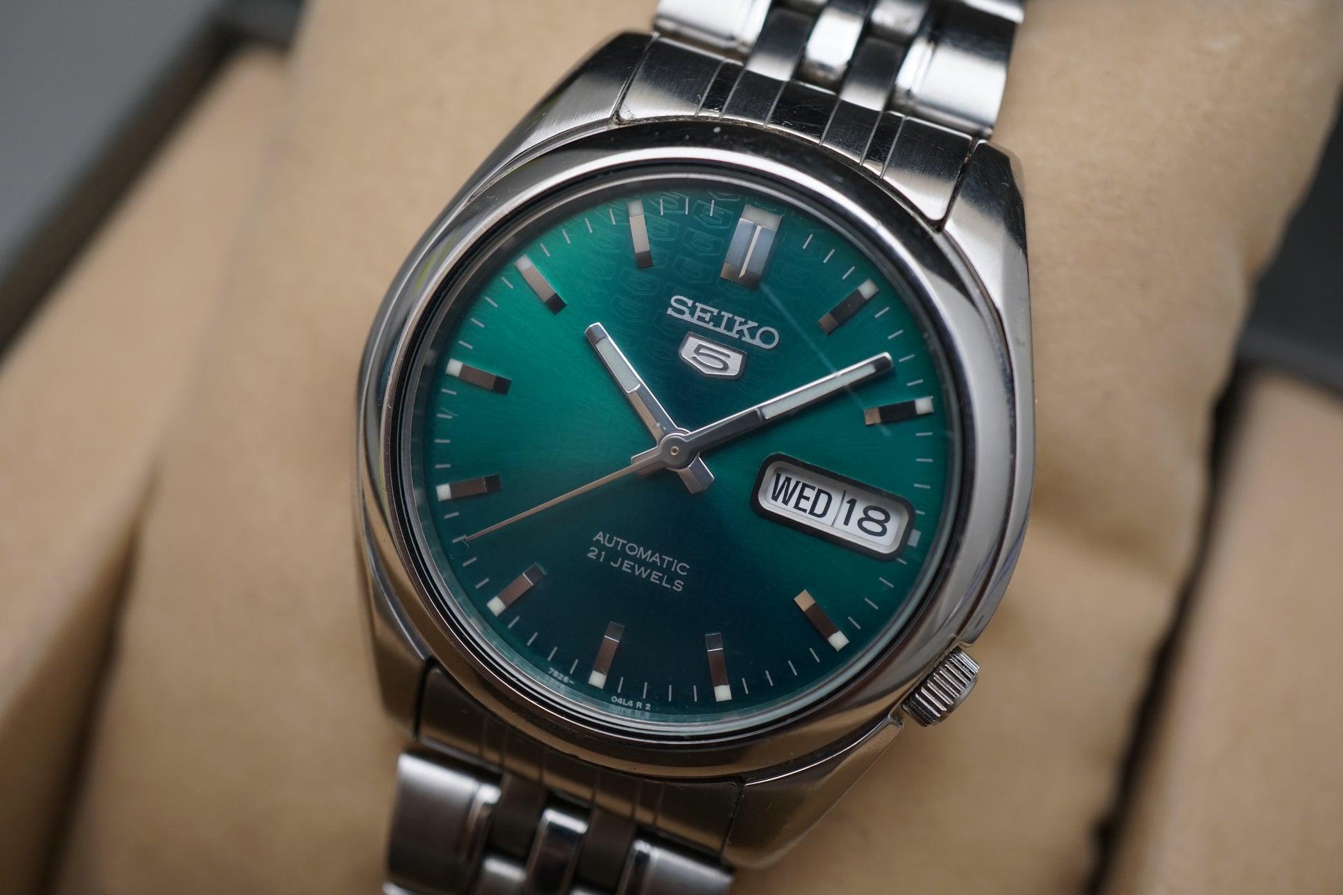 For sale is a Seiko 5 SNK543K1 Rare Emerald Green Motif Dial Automatic Watch