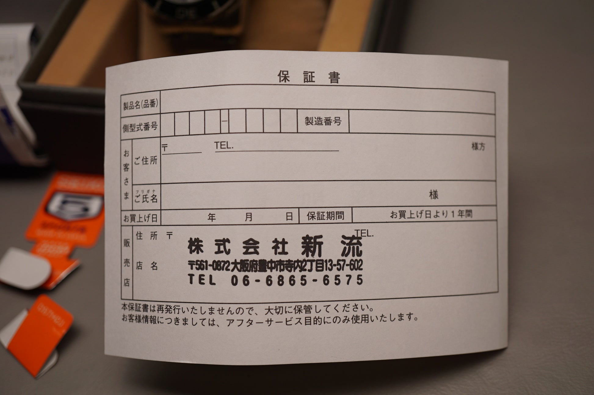 Warranty card: Stamped