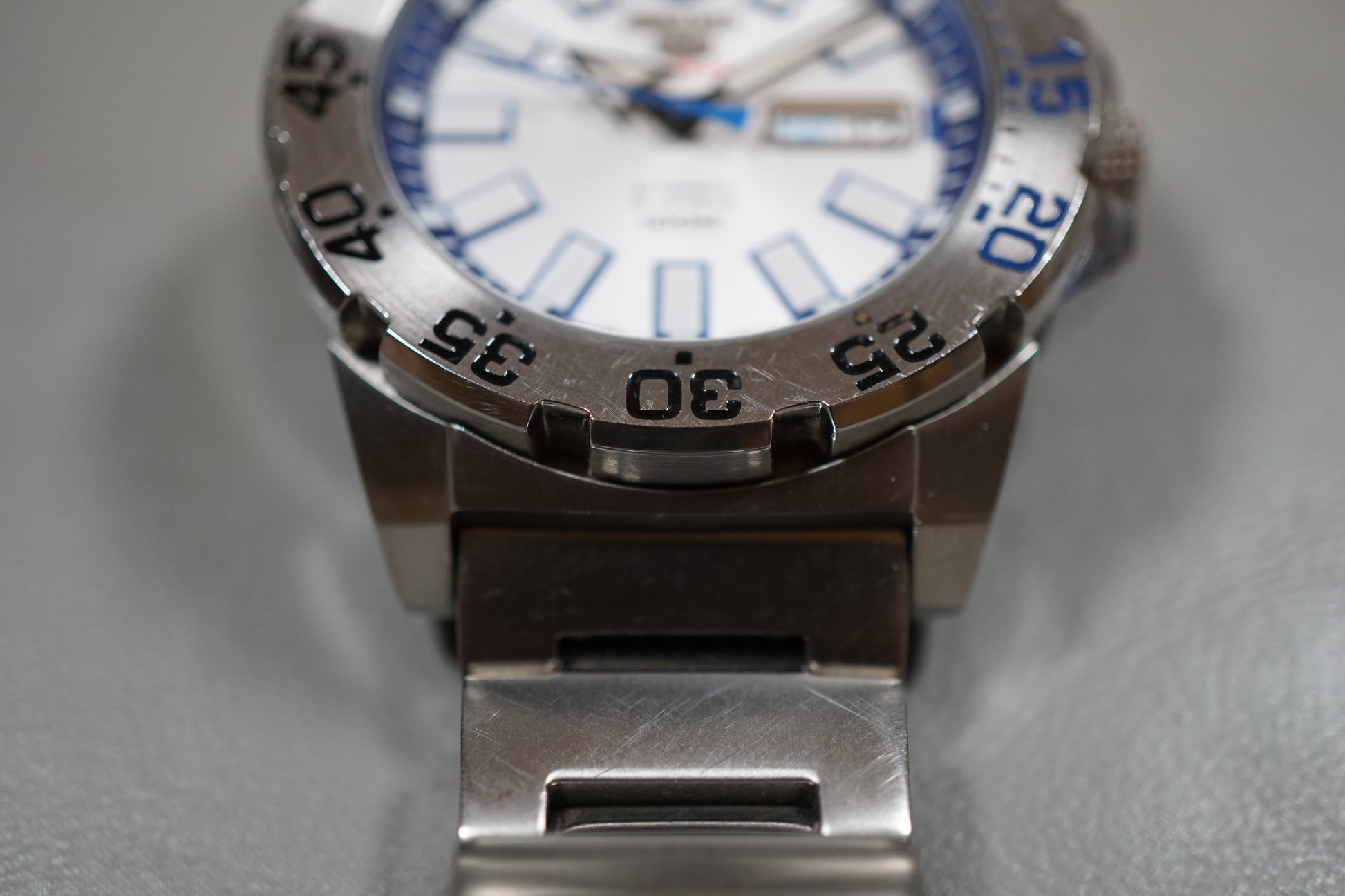 Seiko 5 Sports SRP481 4R36 White Blue "Baby Ice Monster" Automatic Watch