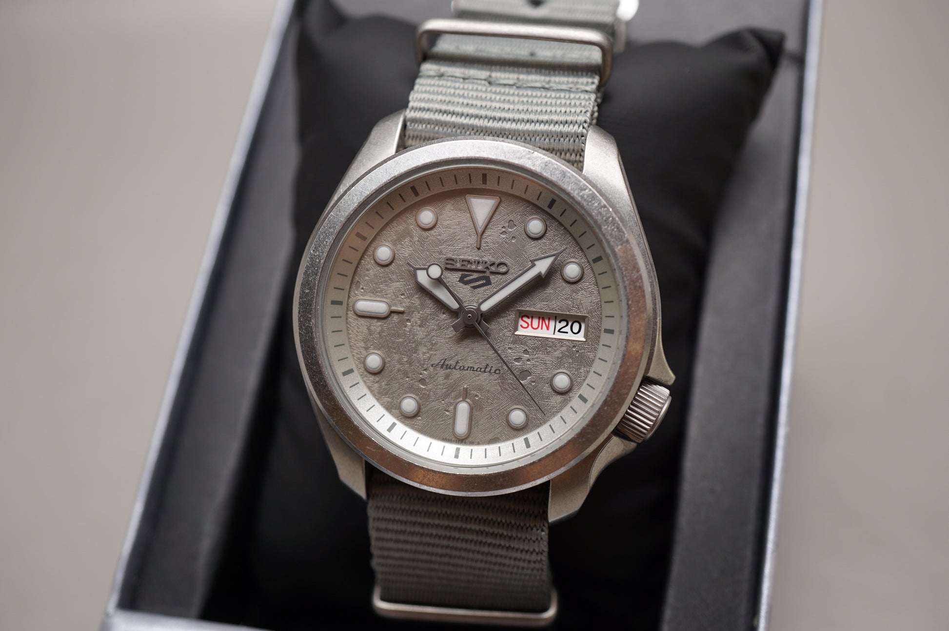 For sale is a Seiko 5 Sports SRPG63K1 Cement Grey Dial Automatic Watch