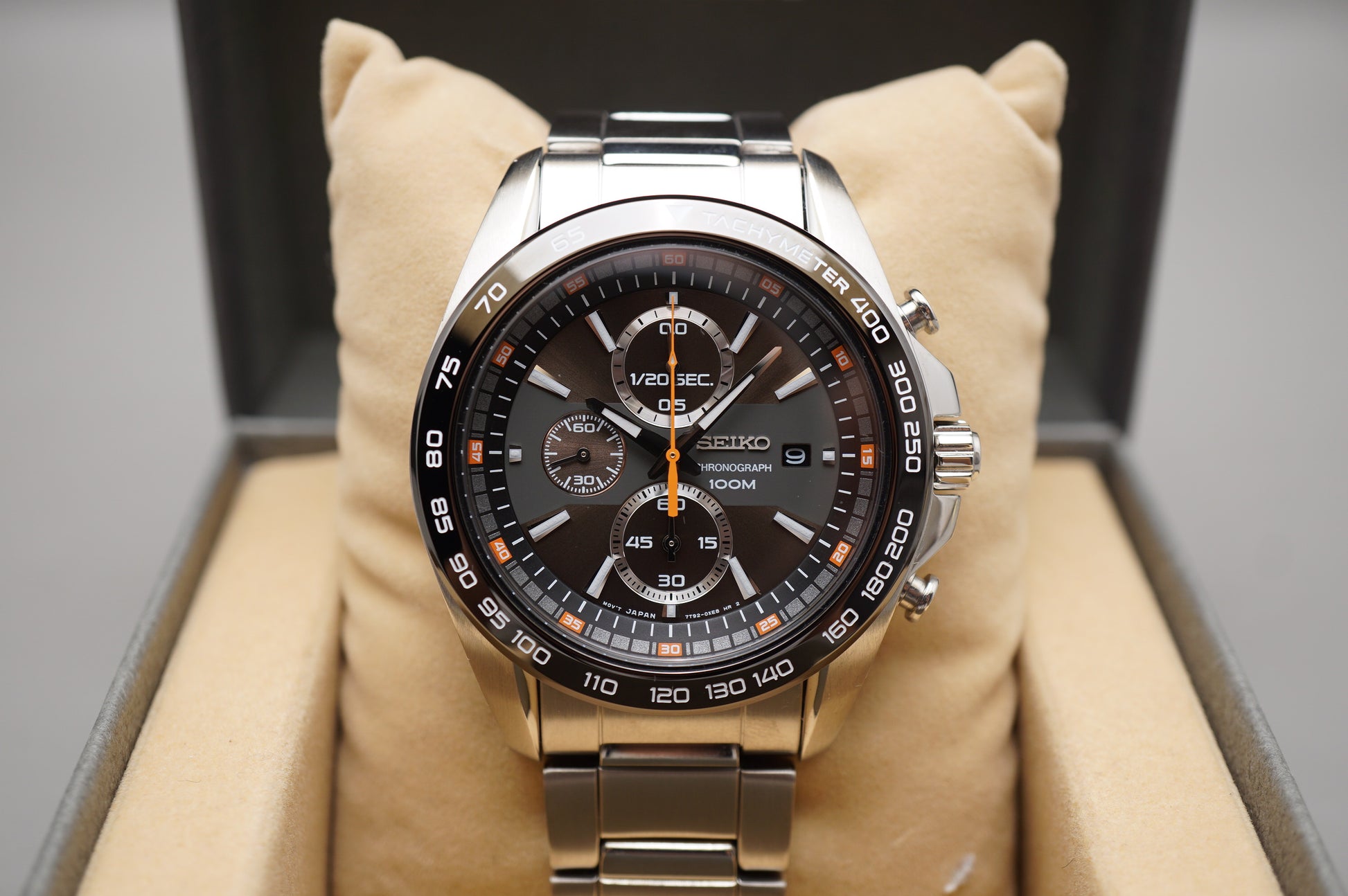 Seiko 7T92-0RK0 Racing Brown Dial Quartz Chronograph Tachymeter Watch
