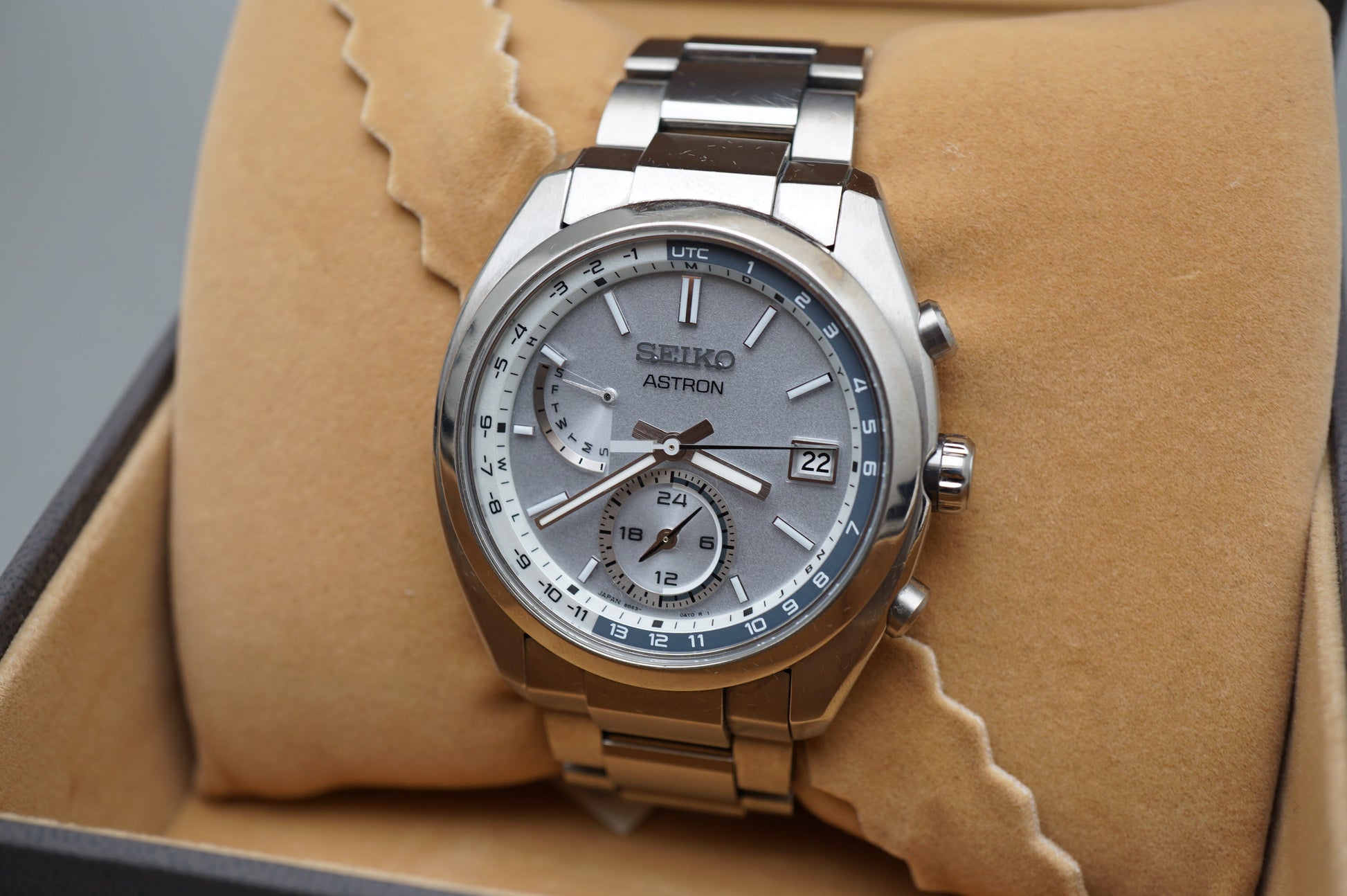 For sale is a Seiko Astron SBXY009 Silver Dial JDM Titanium Radio Wave Solar Quartz Watch